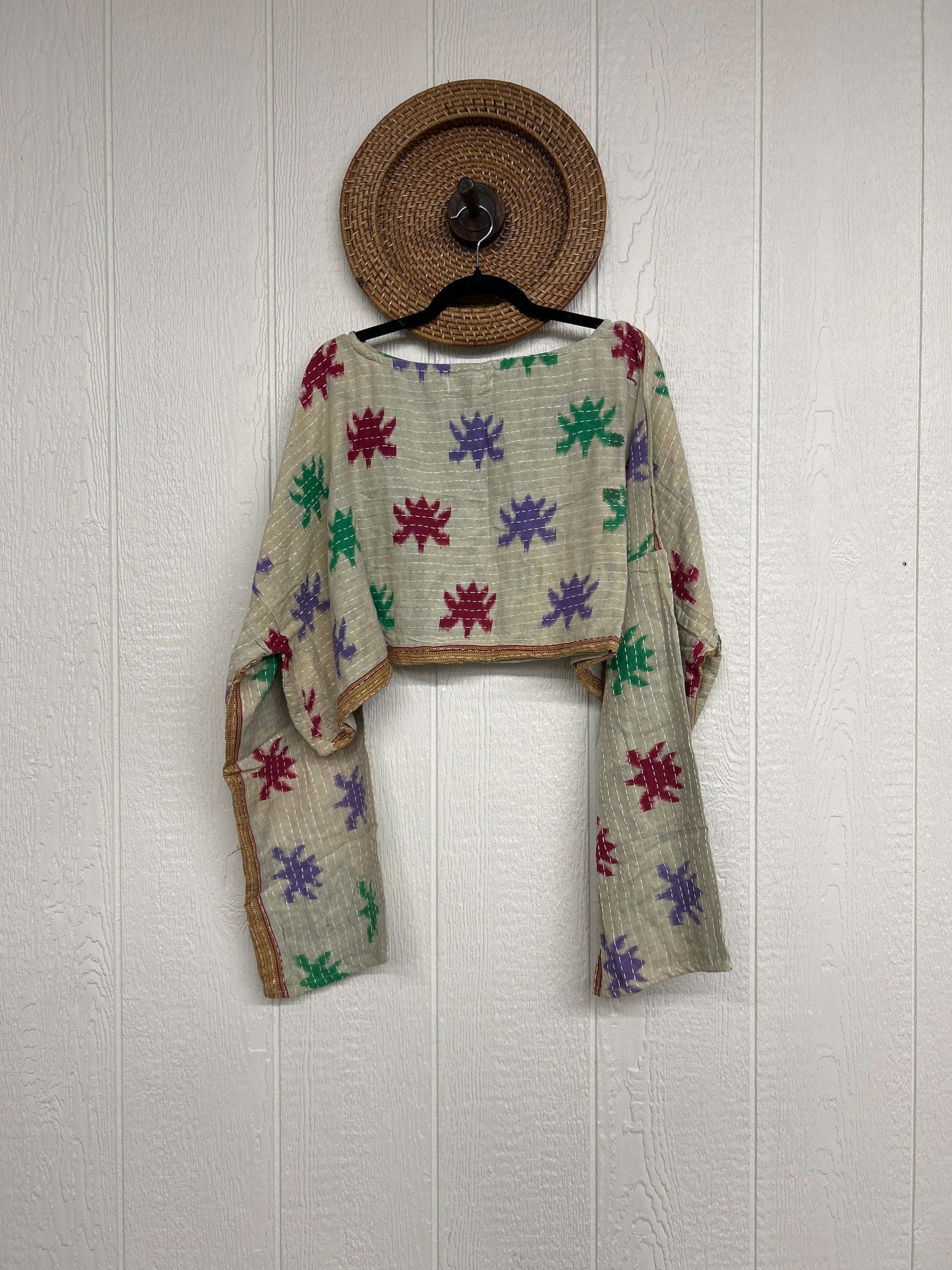 sari. Features long wide sleeves and a funky crop silhouette to wear with all your favorite KB bottoms.