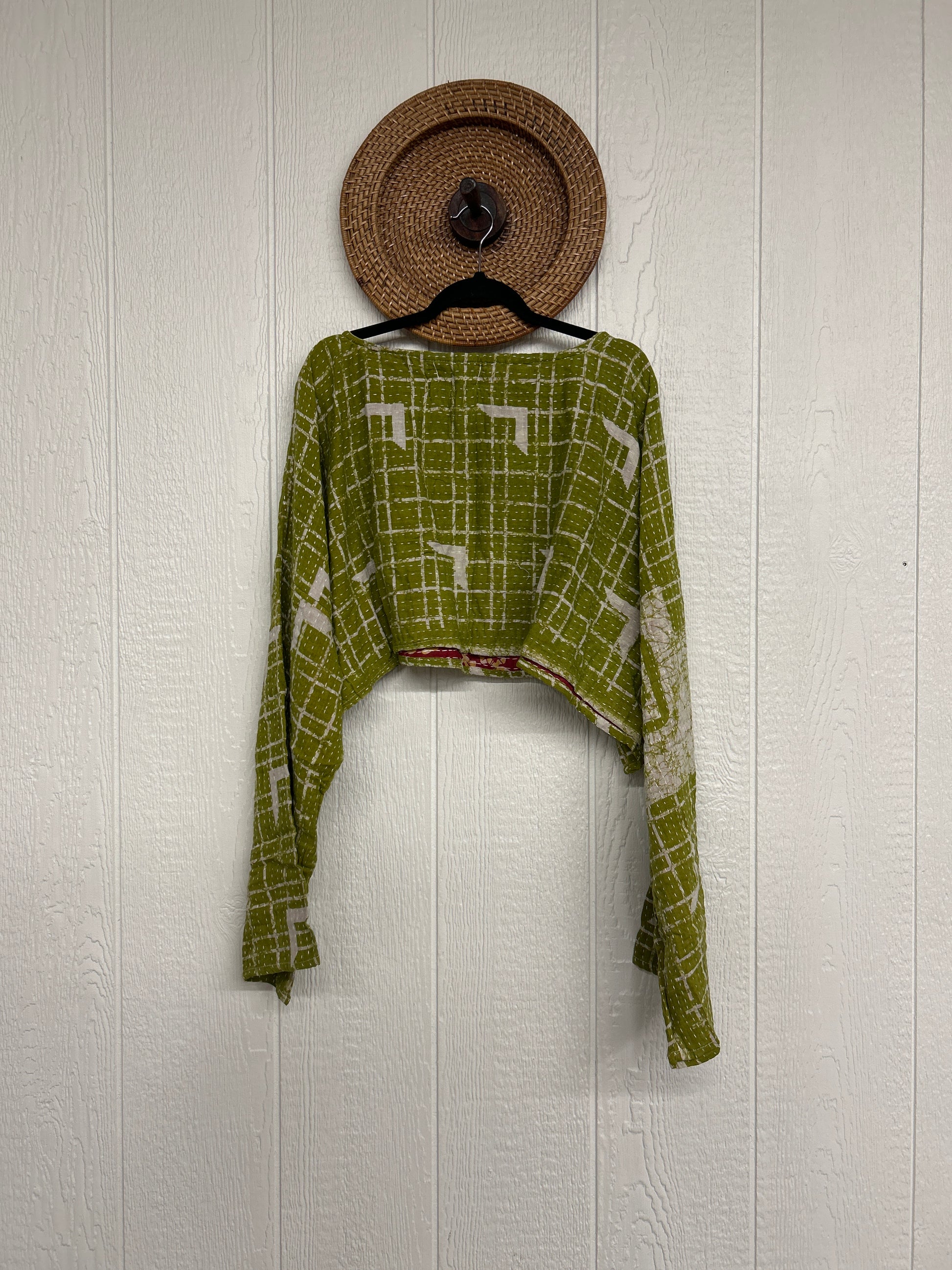 sari. Features long wide sleeves and a funky crop silhouette to wear with all your favorite KB bottoms.