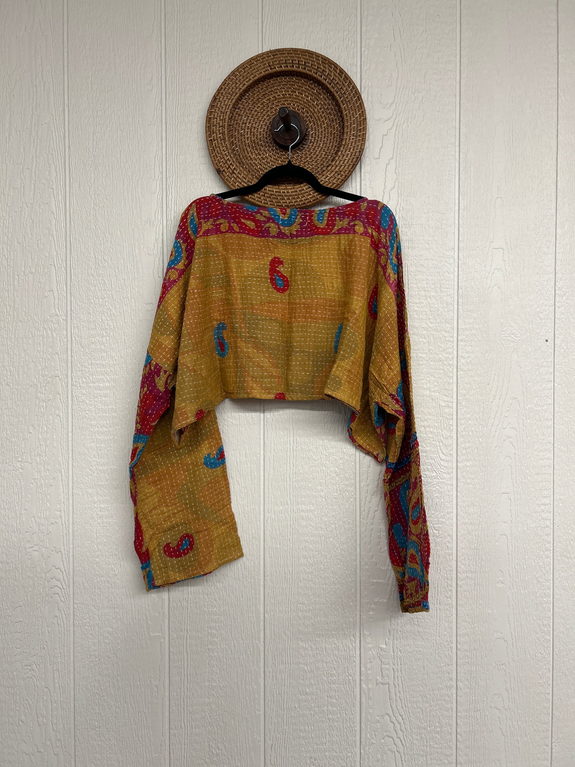 sari. Features long wide sleeves and a funky crop silhouette to wear with all your favorite KB bottoms.