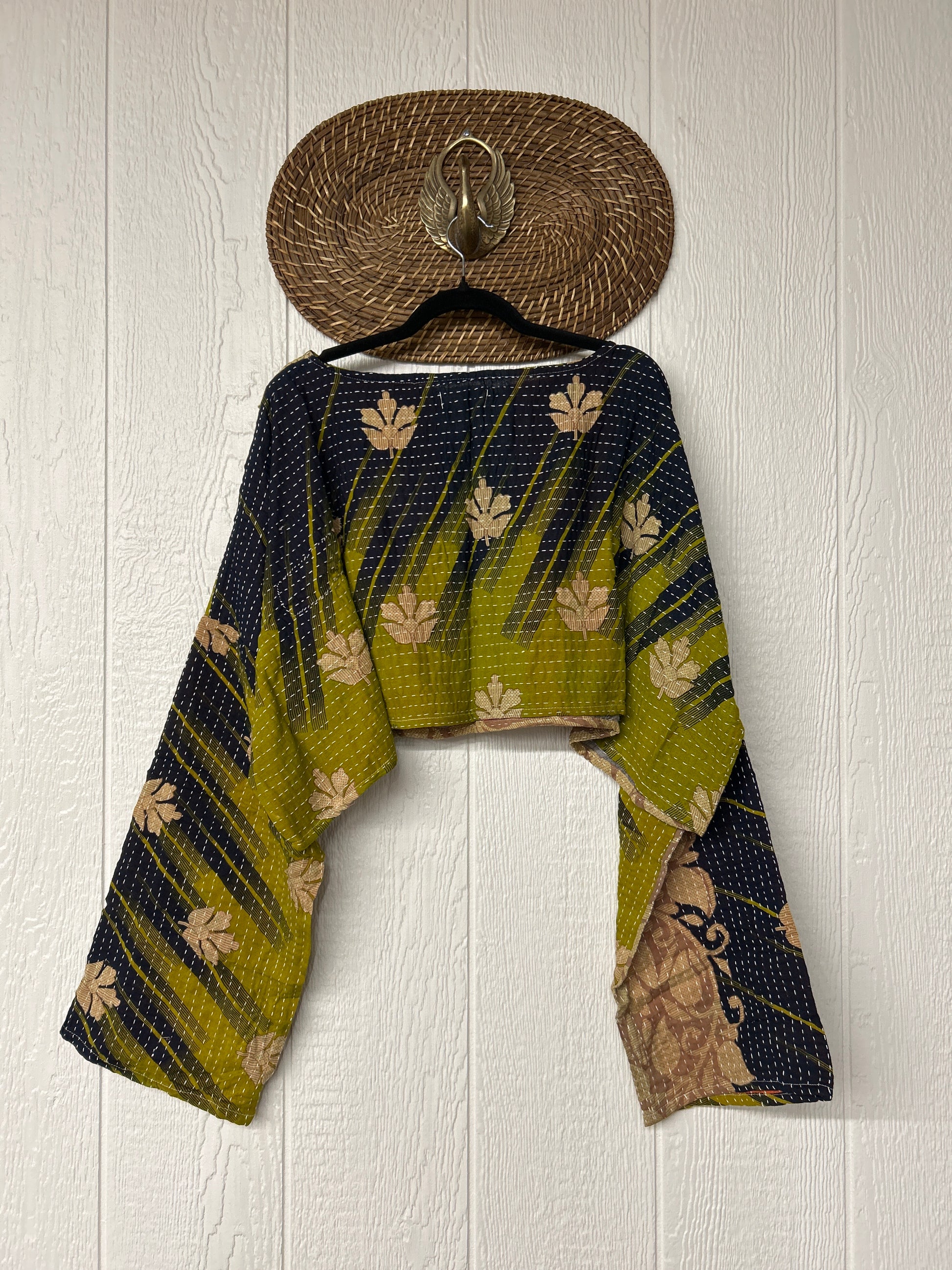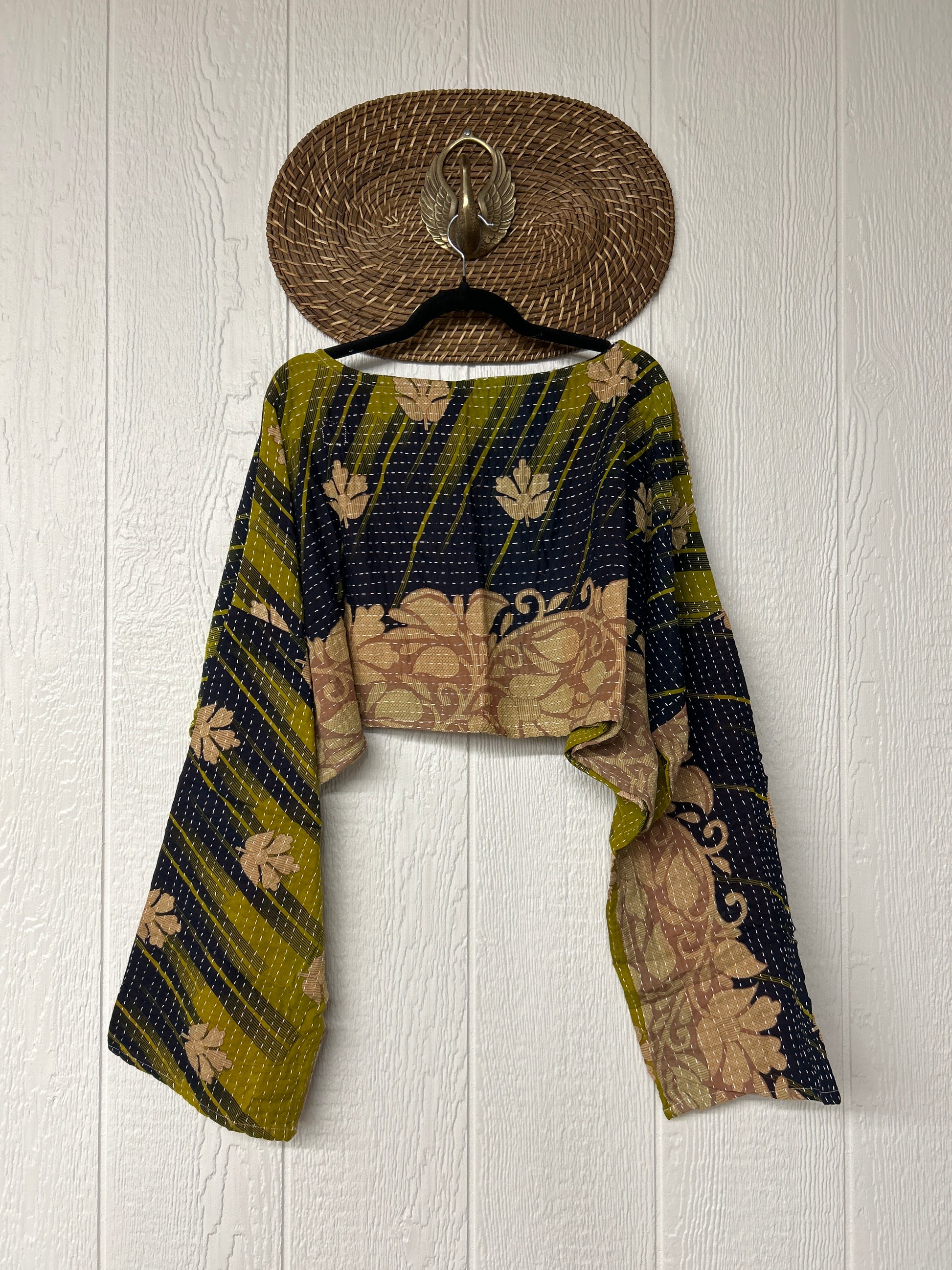 sari. Features long wide sleeves and a funky crop silhouette to wear with all your favorite KB bottoms.