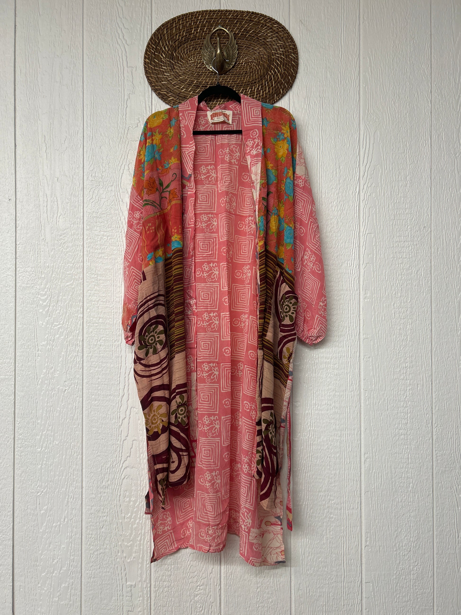 Crepe Dusters are beautiful, flowy, midi-length kimonos made from our ultra lux vintage crepe sari. They feature balloon sleeves with elastic at the wrist, 2 slouchy pockets, and a sash. They are one of our favorite layering pieces EVER.