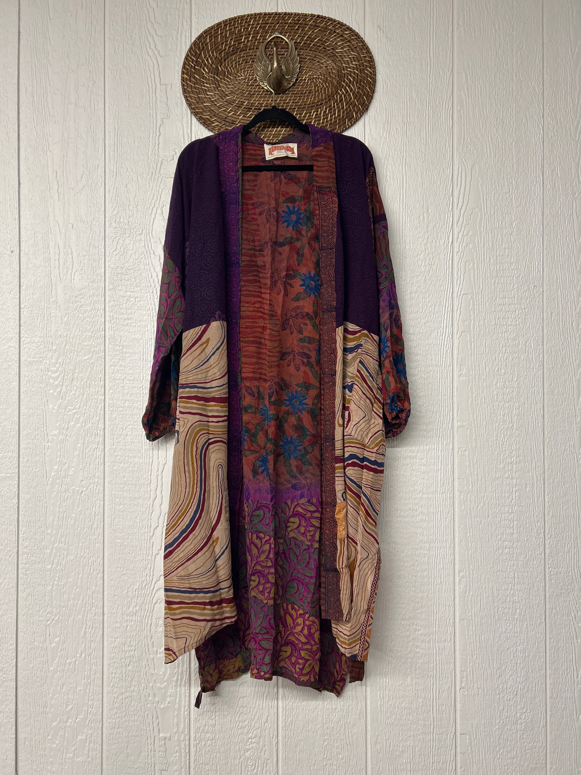 Crepe Dusters are beautiful, flowy, midi-length kimonos made from our ultra lux vintage crepe sari. They feature balloon sleeves with elastic at the wrist, 2 slouchy pockets, and a sash. They are one of our favorite layering pieces EVER.