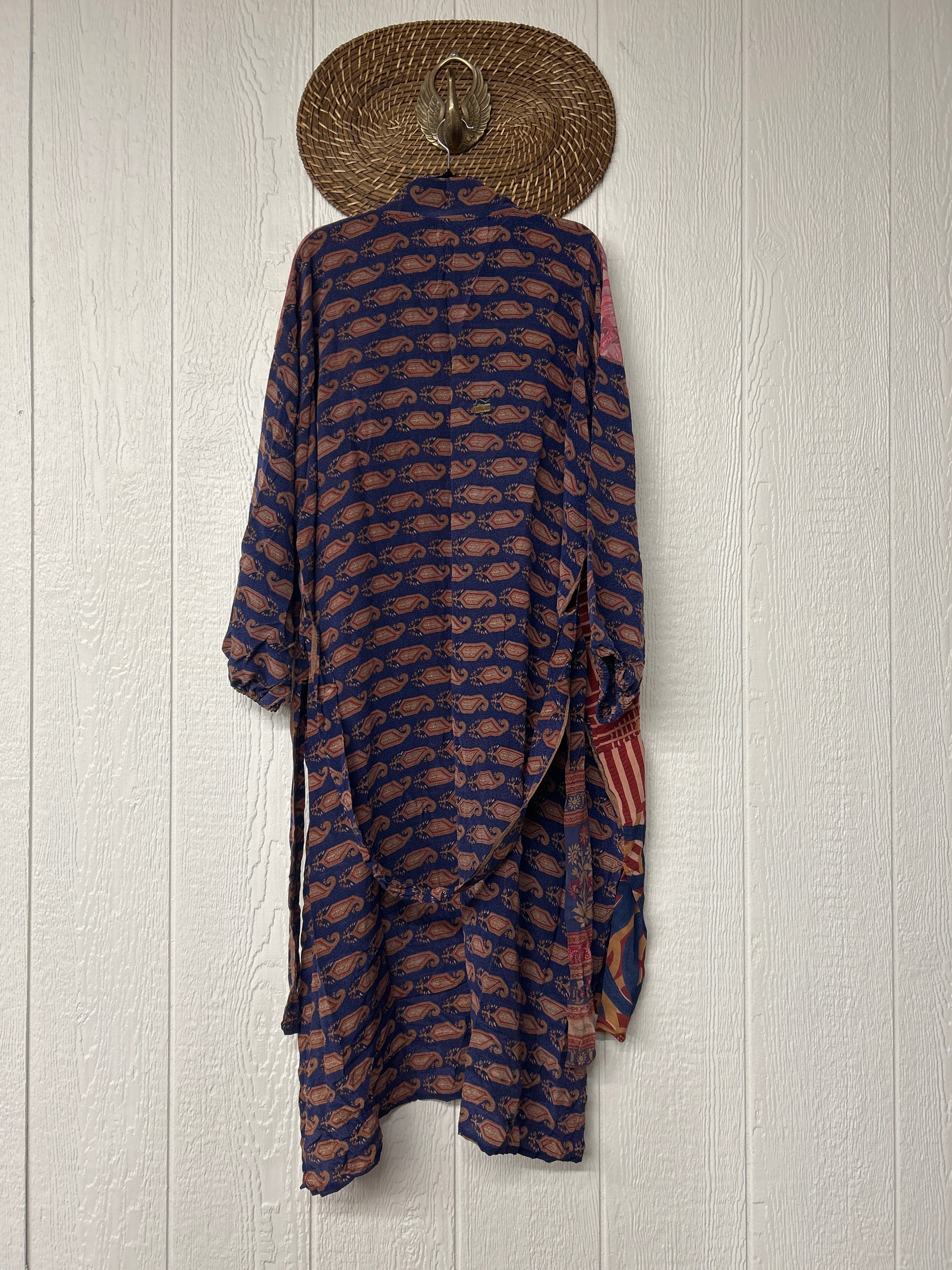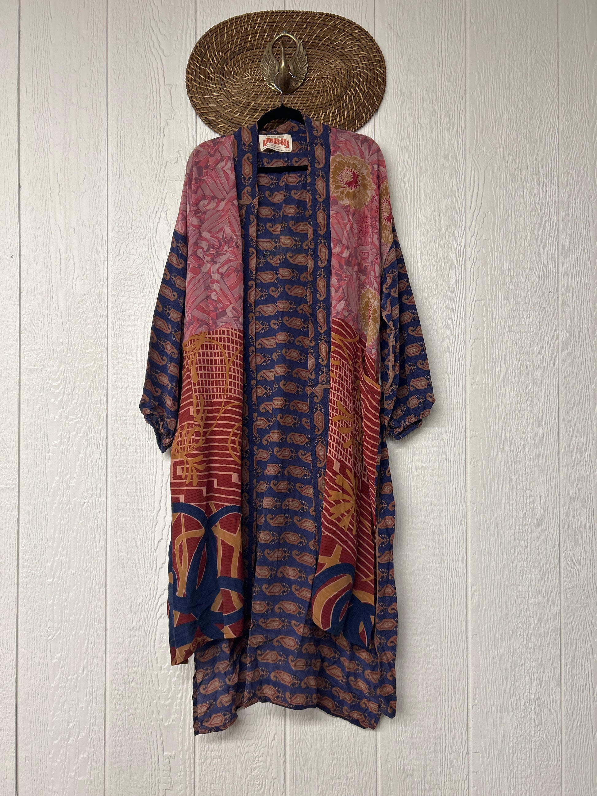 Crepe Dusters are beautiful, flowy, midi-length kimonos made from our ultra lux vintage crepe sari. They feature balloon sleeves with elastic at the wrist, 2 slouchy pockets, and a sash. They are one of our favorite layering pieces EVER.