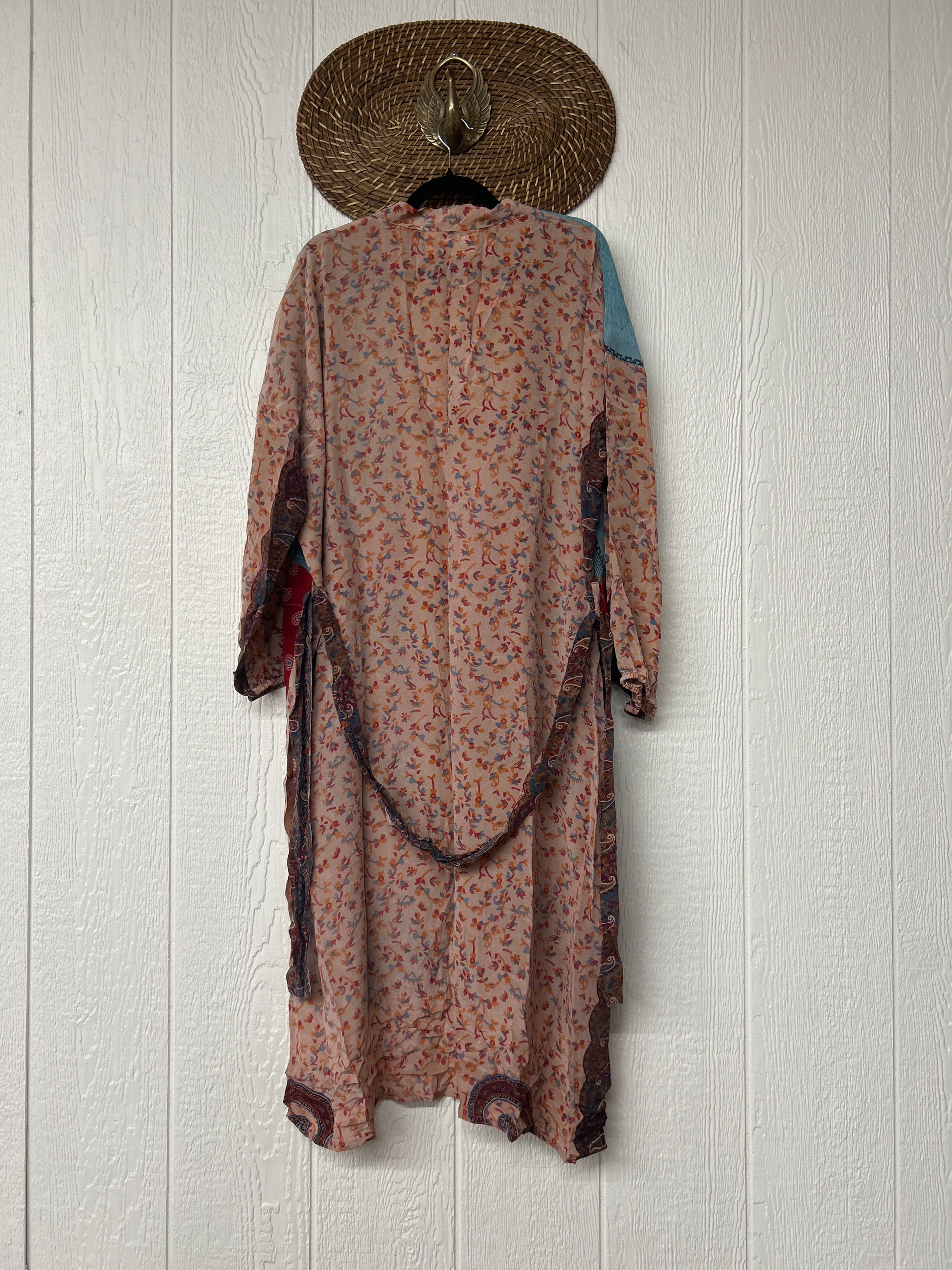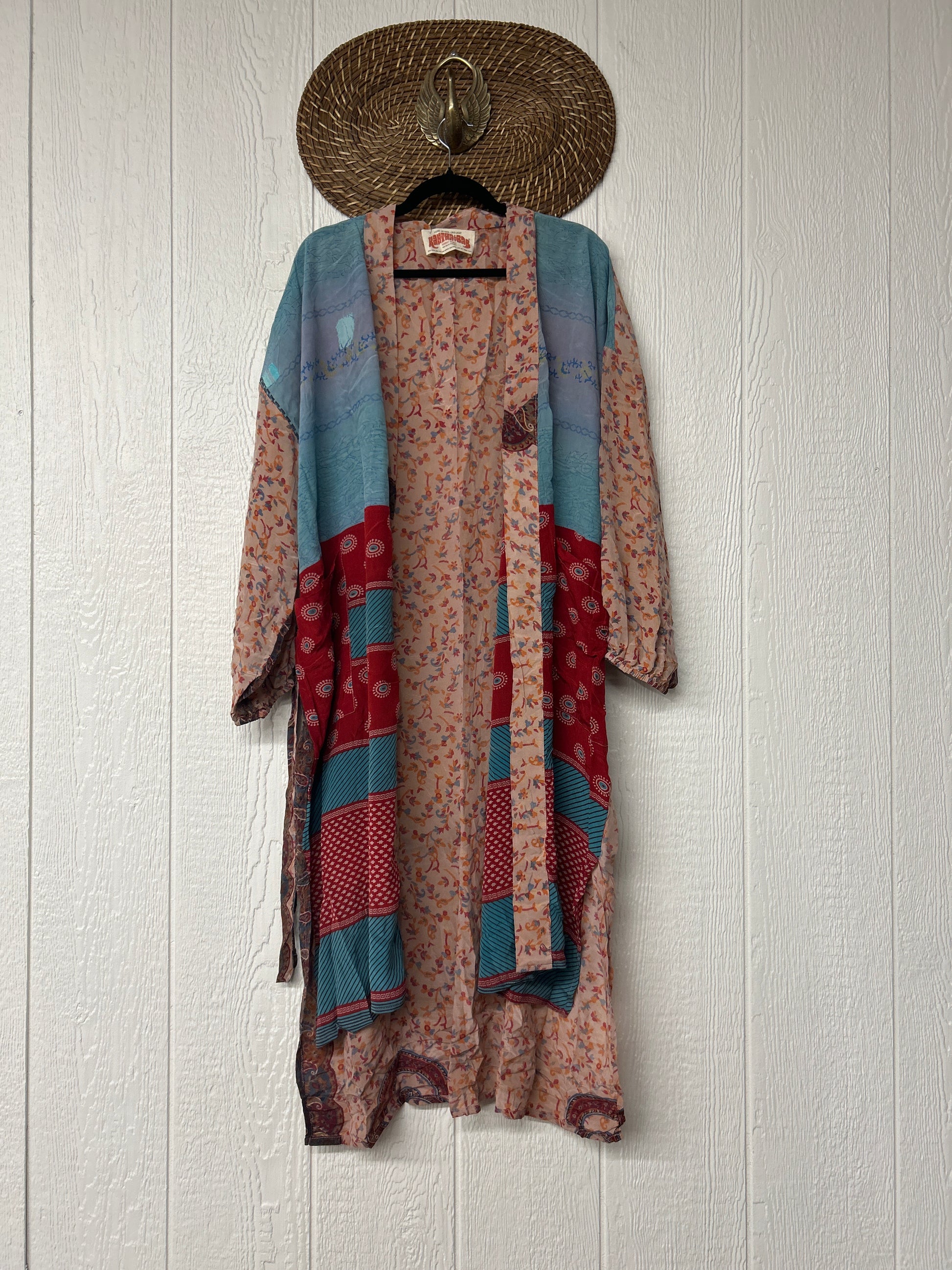 Crepe Dusters are beautiful, flowy, midi-length kimonos made from our ultra lux vintage crepe sari. They feature balloon sleeves with elastic at the wrist, 2 slouchy pockets, and a sash. They are one of our favorite layering pieces EVER.