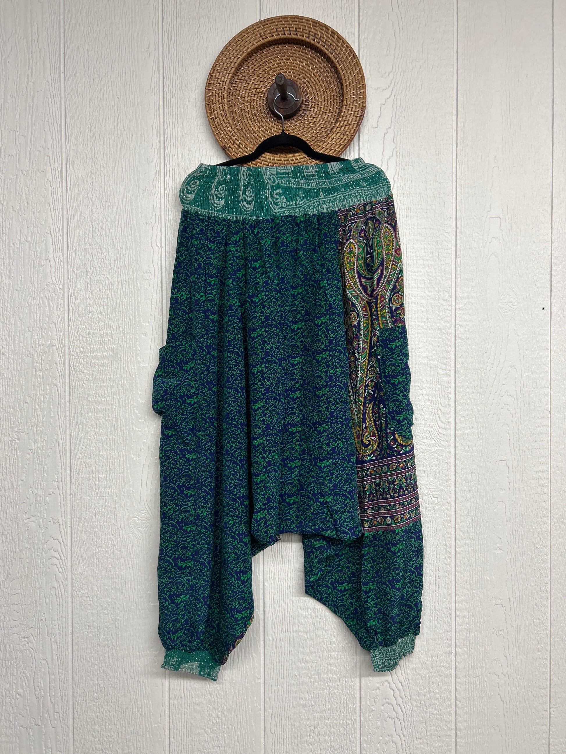 Made from vintage crepe sari, these are perfectly slouchy with a low harem drop for that effortless, flowy feel. Featuring deep side pockets, kantha stretch at the ankles, and a kantha smocked waistband that feels smooth and soft on the skin.