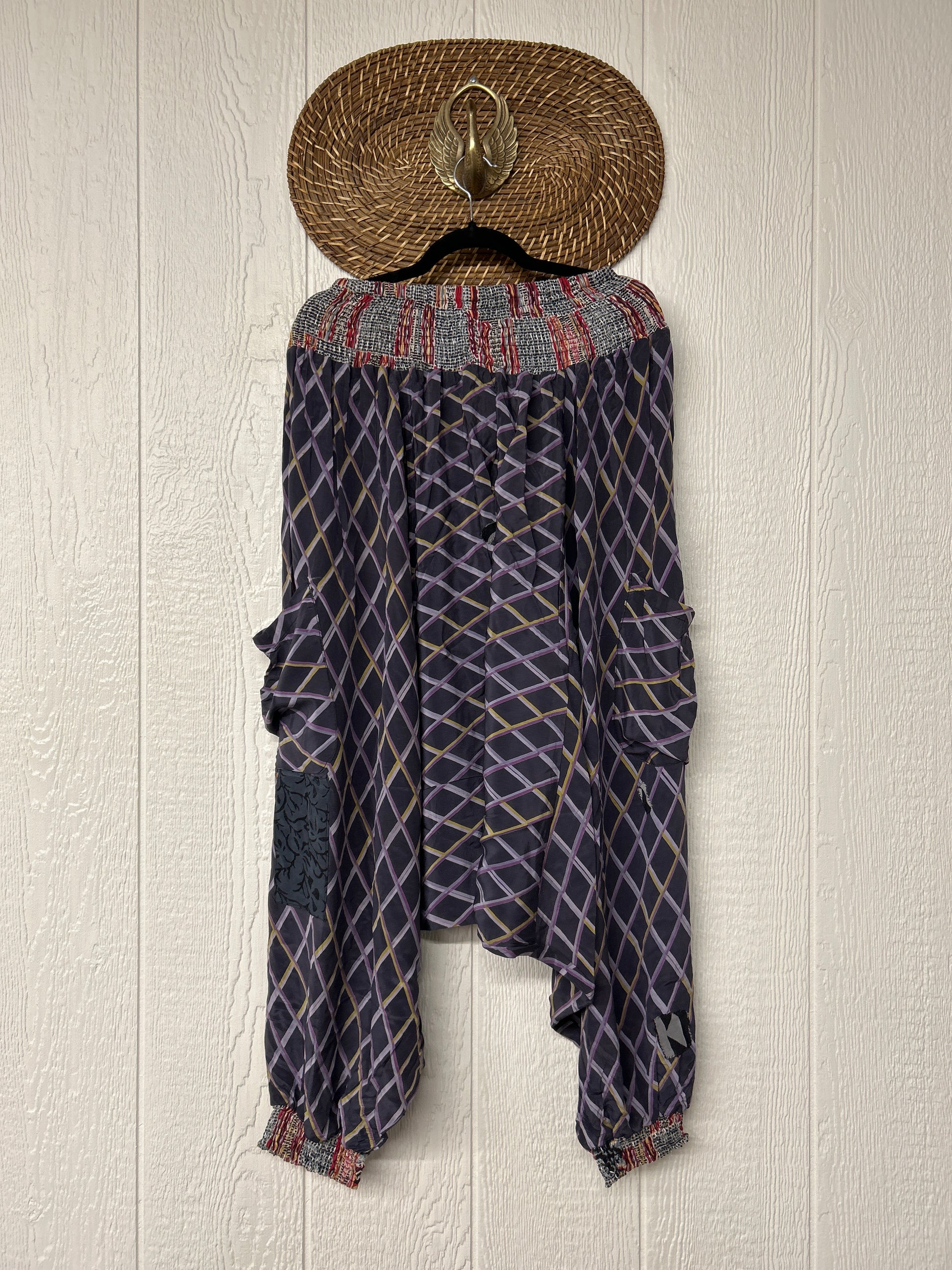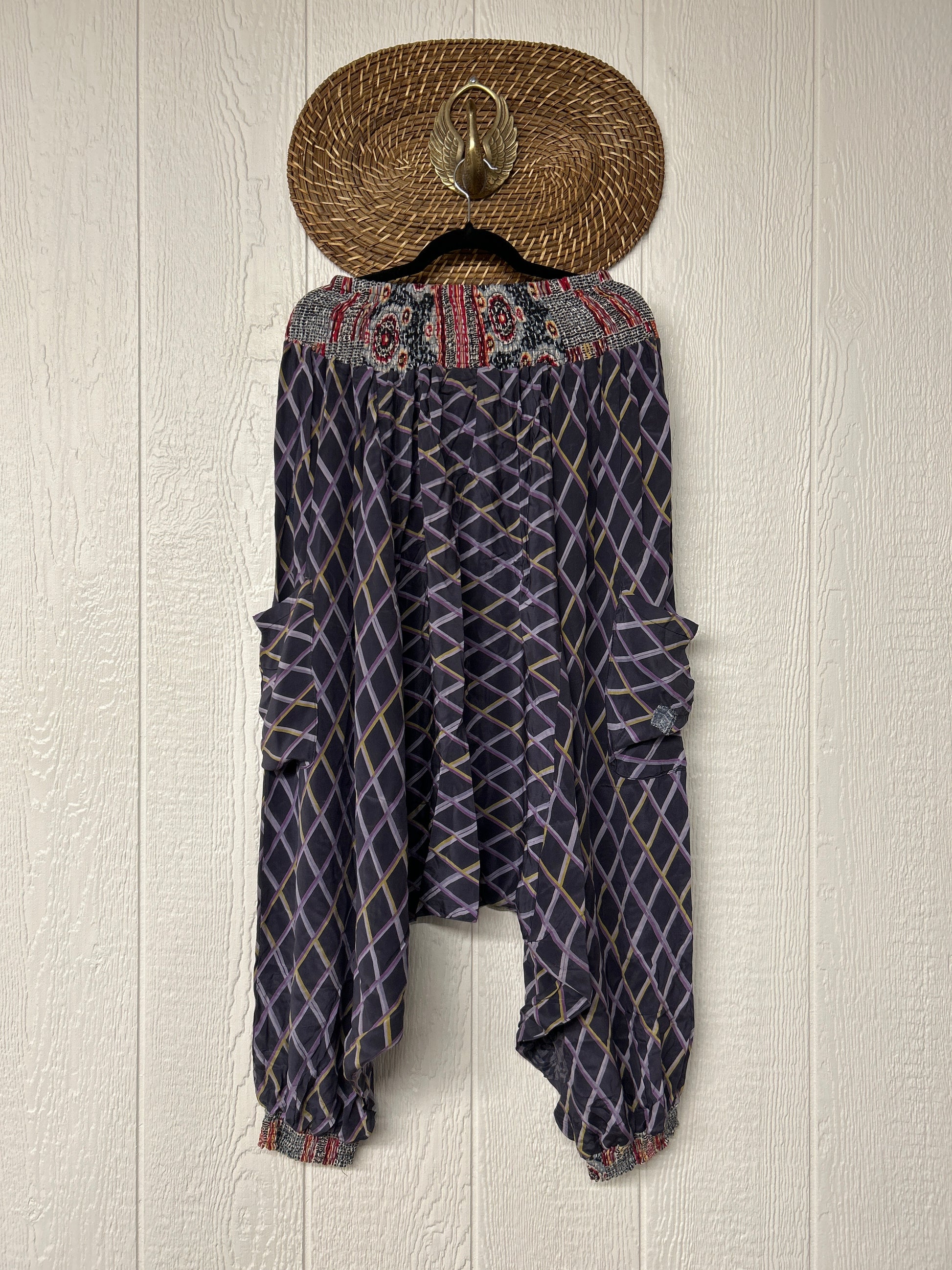 Made from vintage crepe sari, these are perfectly slouchy with a low harem drop for that effortless, flowy feel. Featuring deep side pockets, kantha stretch at the ankles, and a kantha smocked waistband that feels smooth and soft on the skin.
