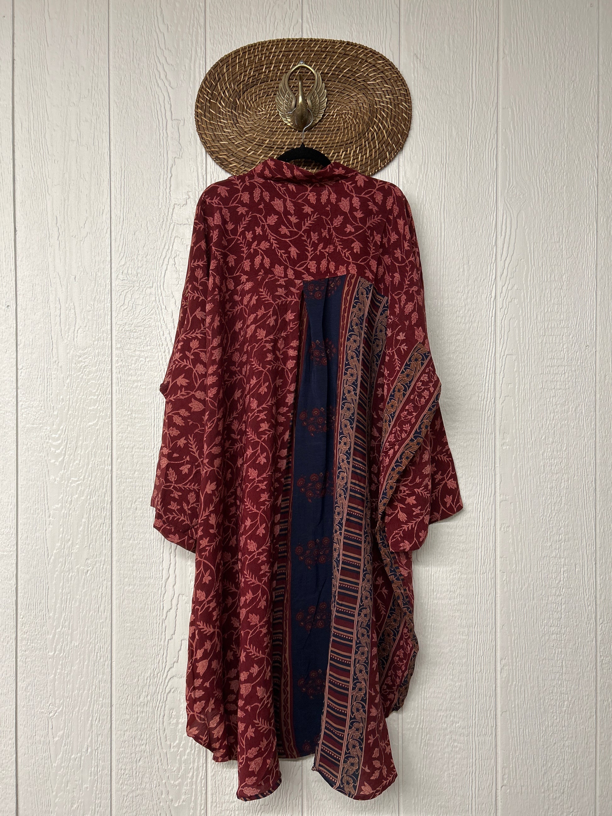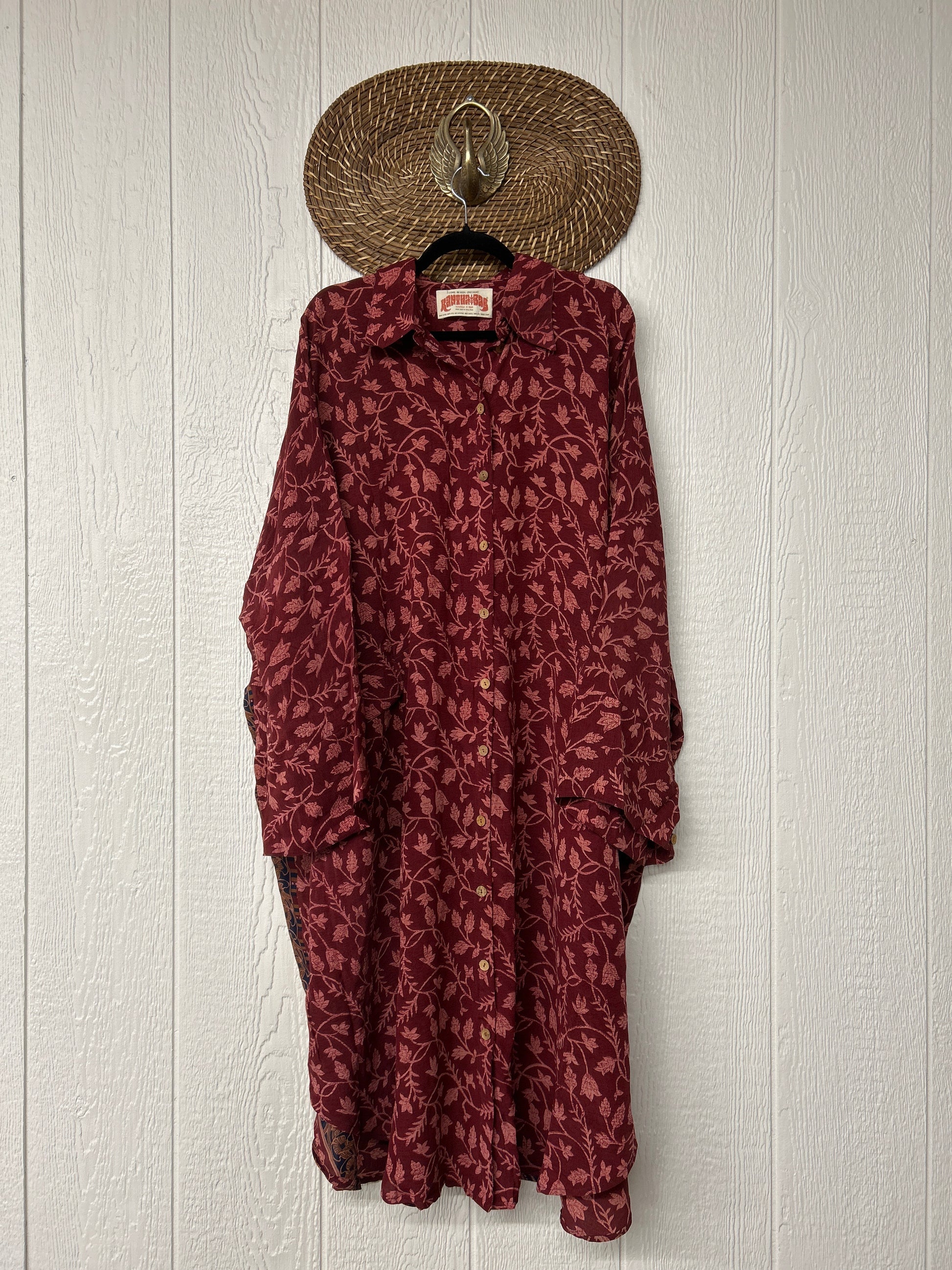 Made from our vintage crepe sari, this billowy dream functional buttons, two deep pockets in the front, dreamy longsleeves and a curved bottom.