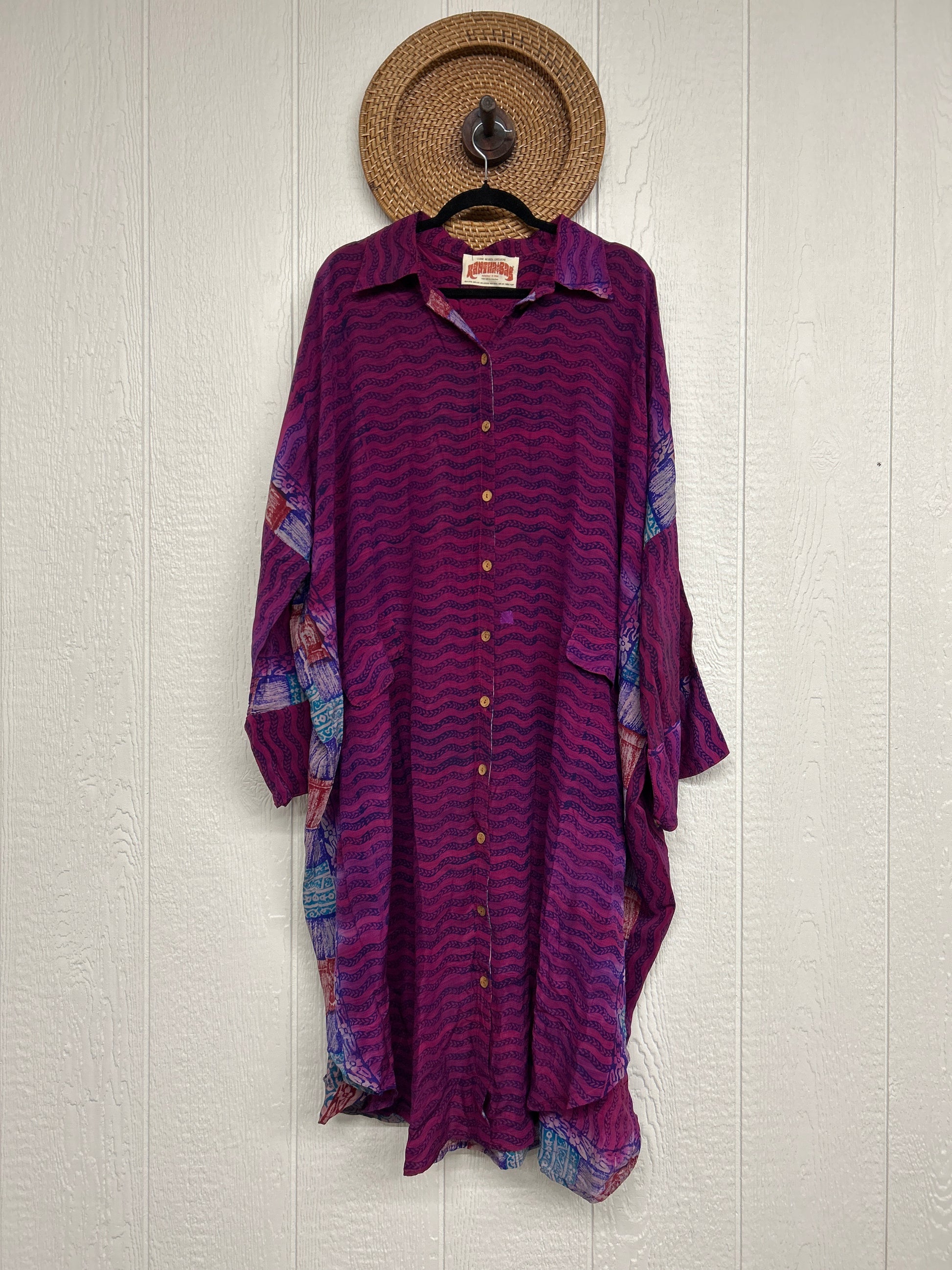Made from our vintage crepe sari, this billowy dream functional buttons, two deep pockets in the front, dreamy longsleeves and a curved bottom.