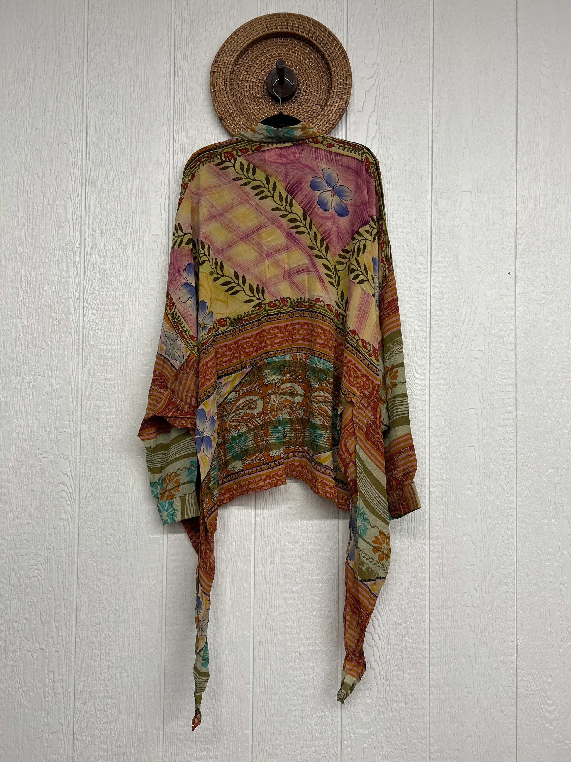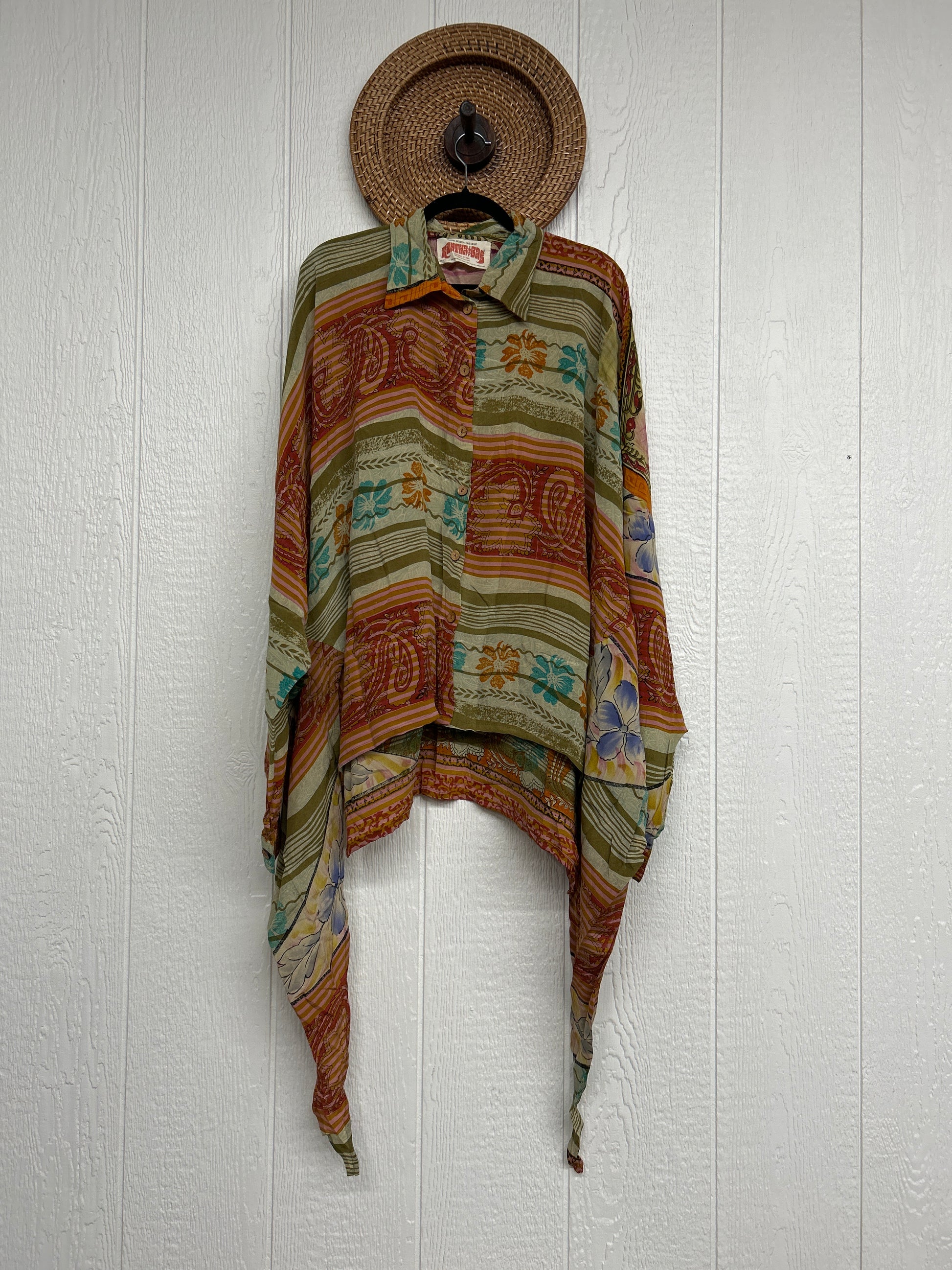 Crafted from our ultra lux vintage crepe sari this floaty dream features a Button-down placket with a high low hem, collar, and button cuffs.