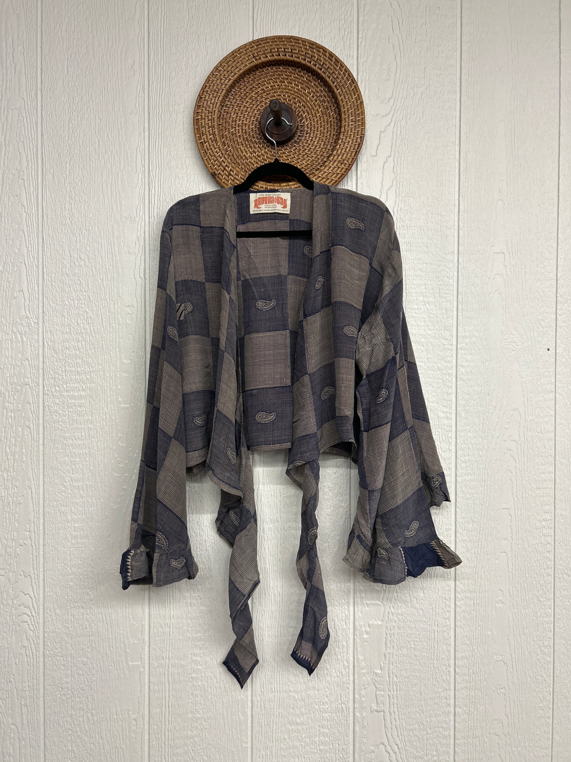 Crafted from vintage crepe sari this floaty layer features bounce bell sleeves and a tie closure long enough to wrap around your body. We know this will be one of your new favorites.