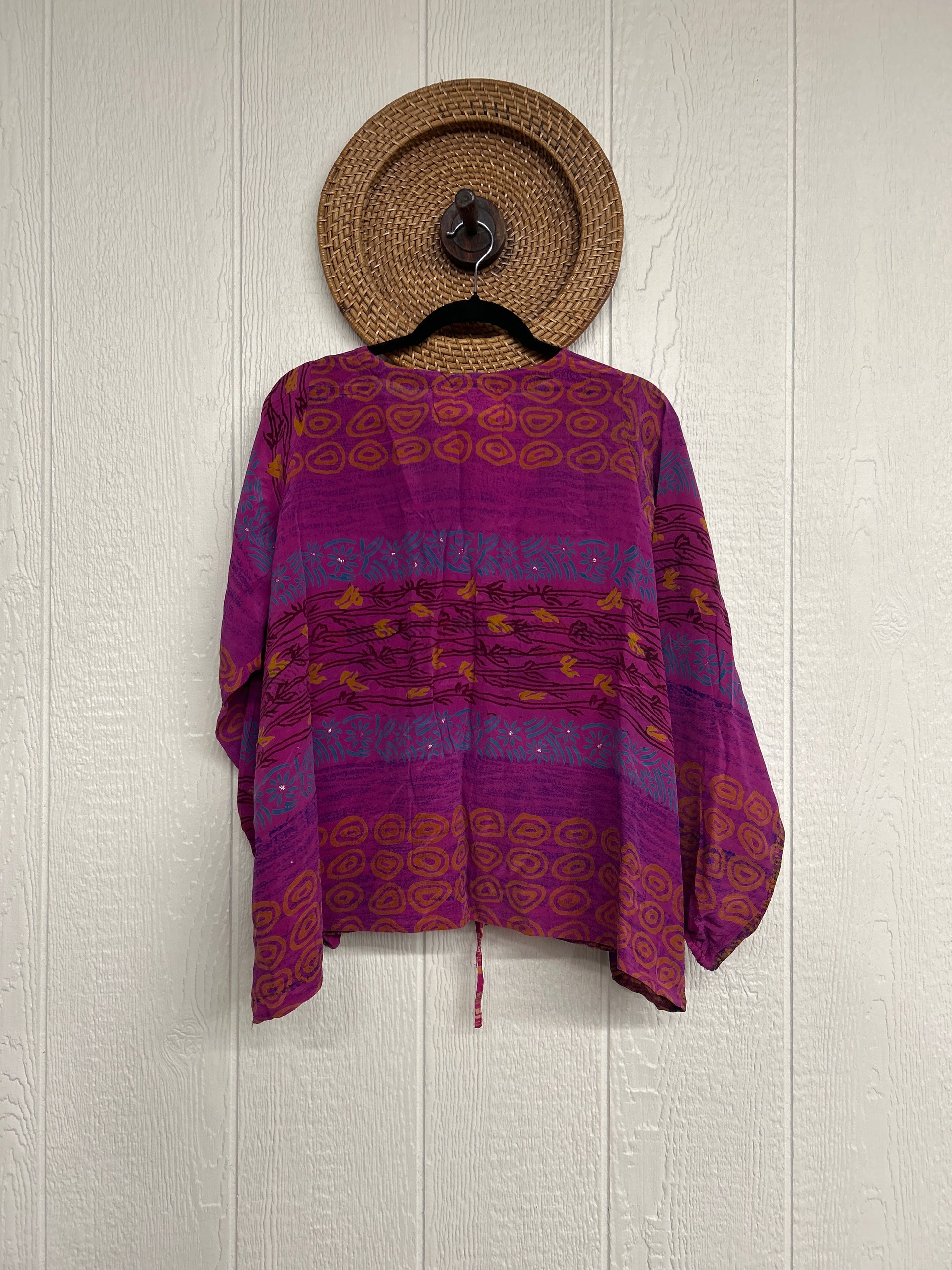 Disclosure: Our vintage styles have lived a full life before becoming the designs in our shop. Fabrics may have small threads or holes in the layers. Color inconsistency or small stains may be present. The saris are sewn together and extend the life of each design.