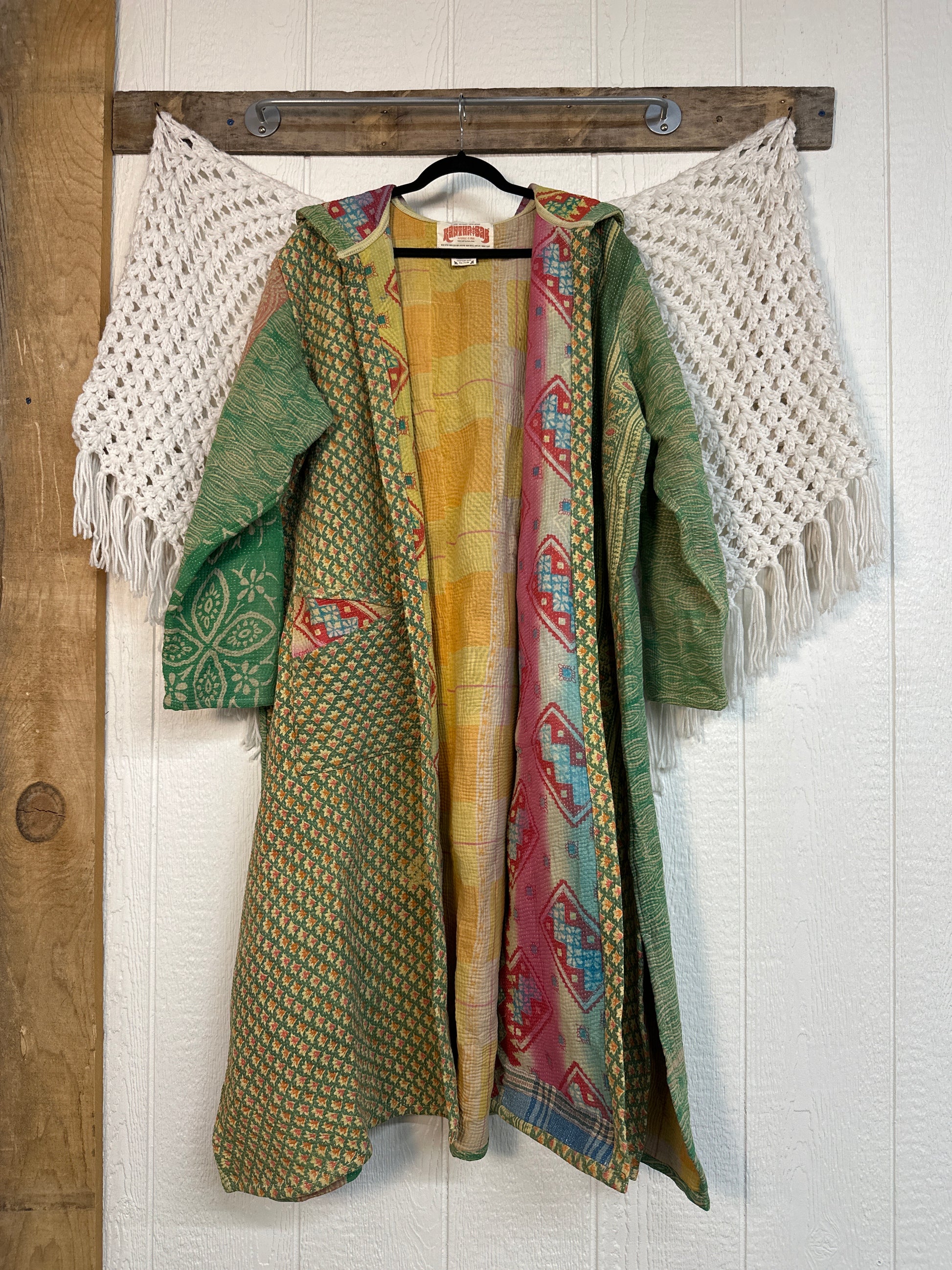 Perfect for layering the Rising Sun Coat is crafted from our hand fine kantha stitched cotton sari,