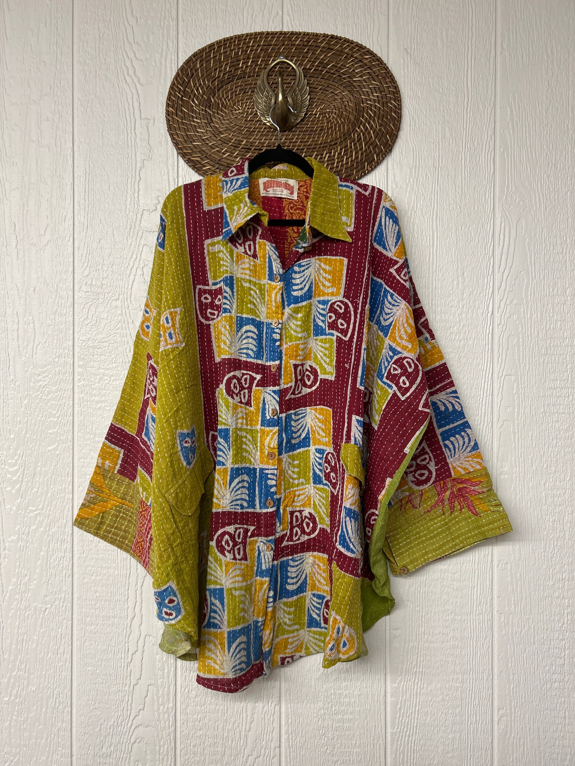 Made from our vintage cotton embroidered sari this billowy dream features a crepe panel in the back, functional buttons, two deep pockets in the front and a curved bottom.