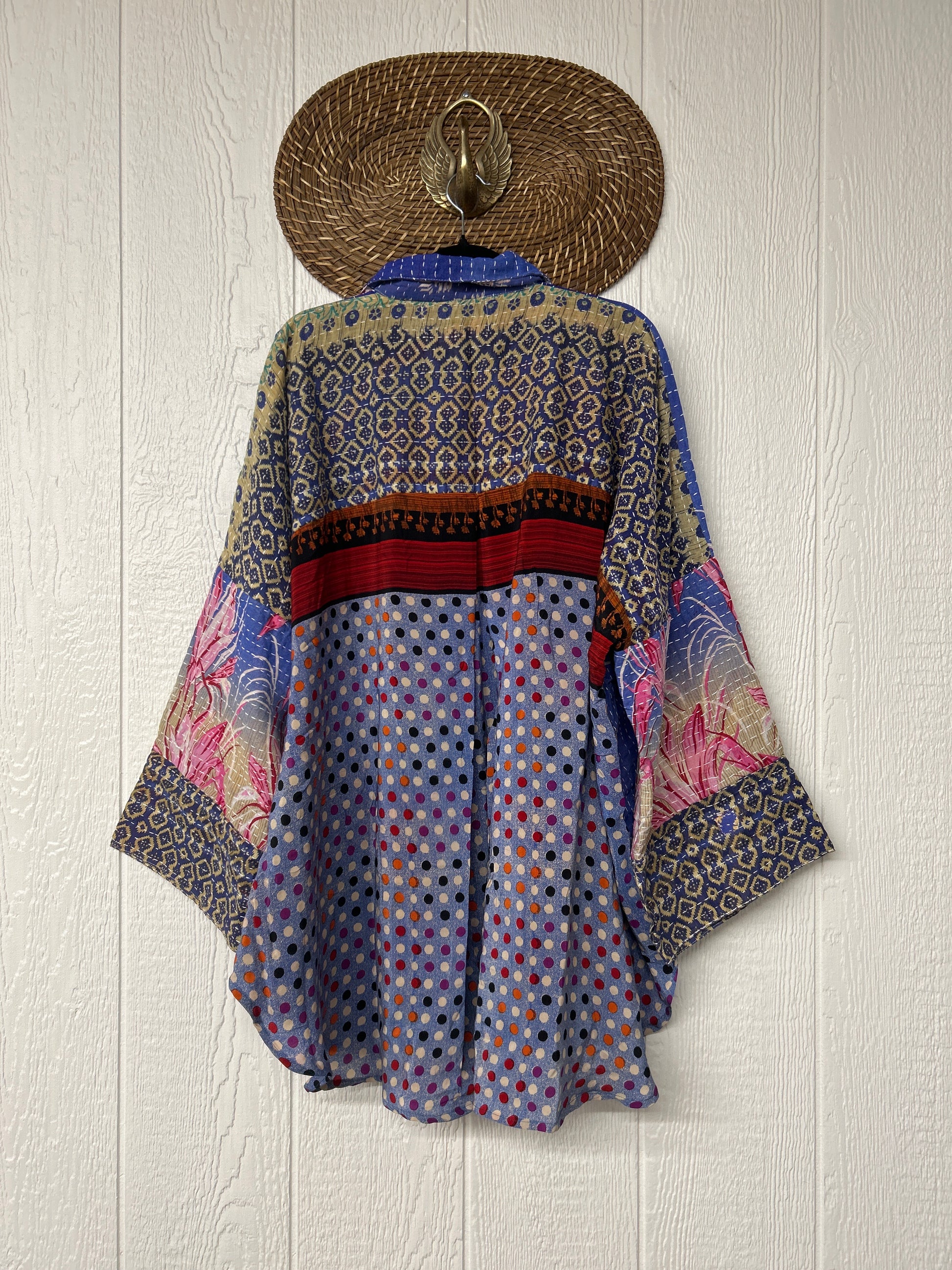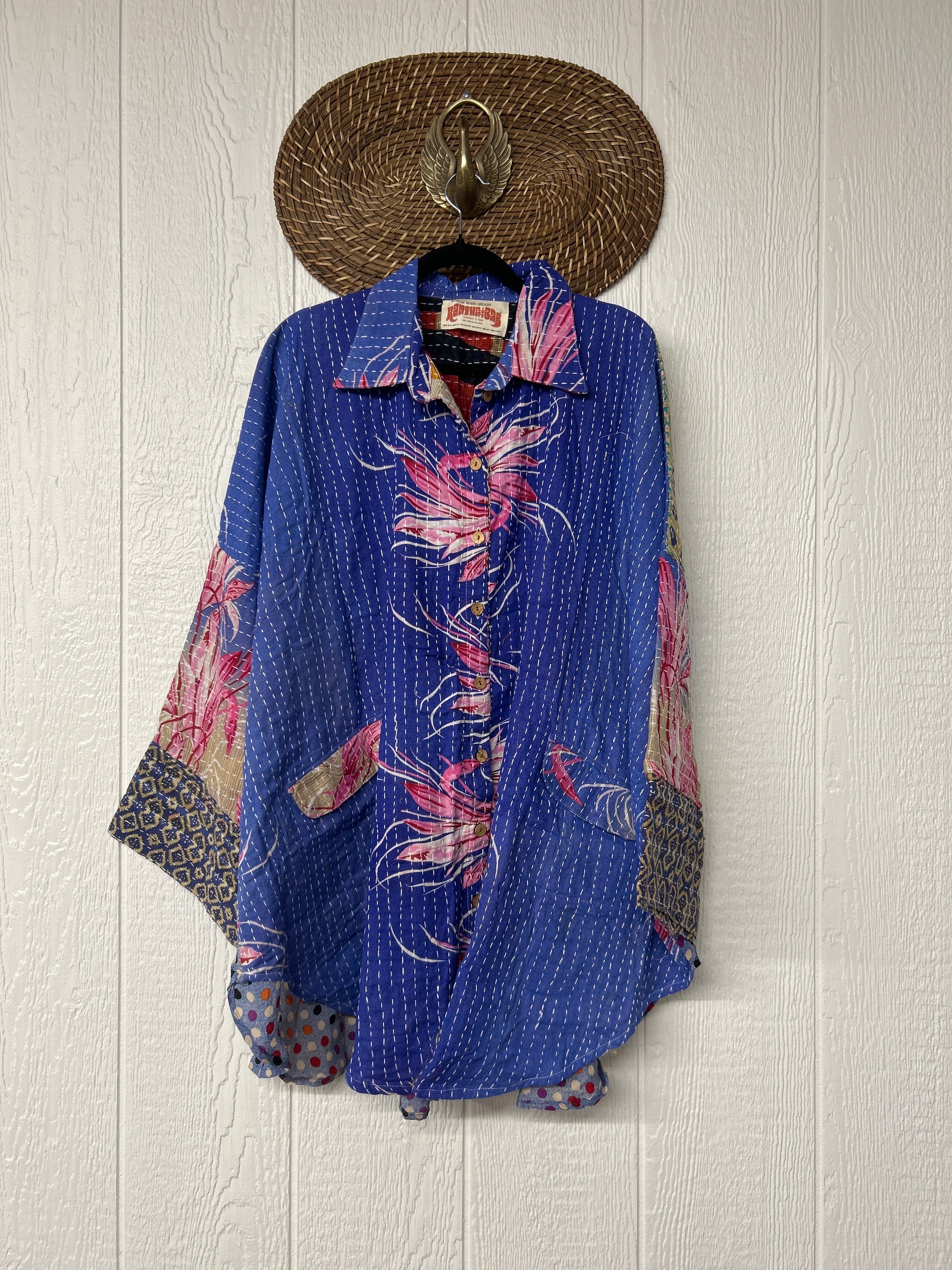 Made from our vintage cotton embroidered sari this billowy dream features a crepe panel in the back, functional buttons, two deep pockets in the front and a curved bottom.