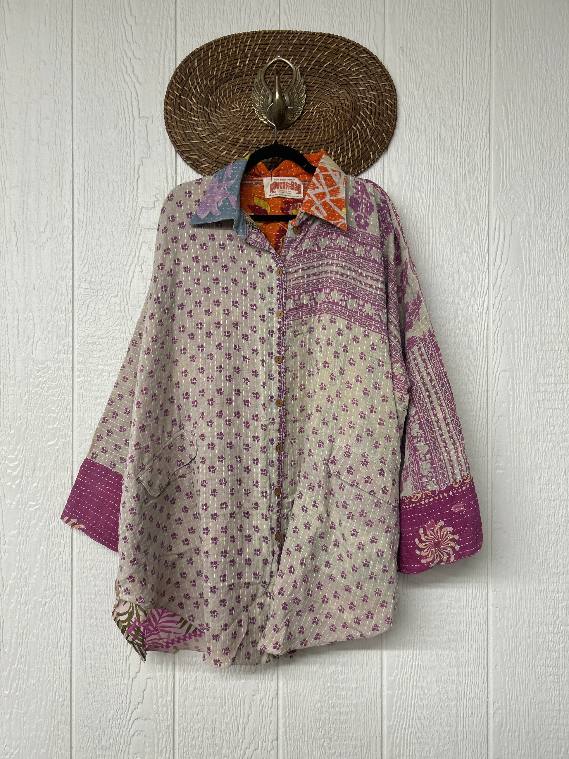 Made from our vintage cotton embroidered sari this billowy dream features a crepe panel in the back, functional buttons, two deep pockets in the front and a curved bottom.