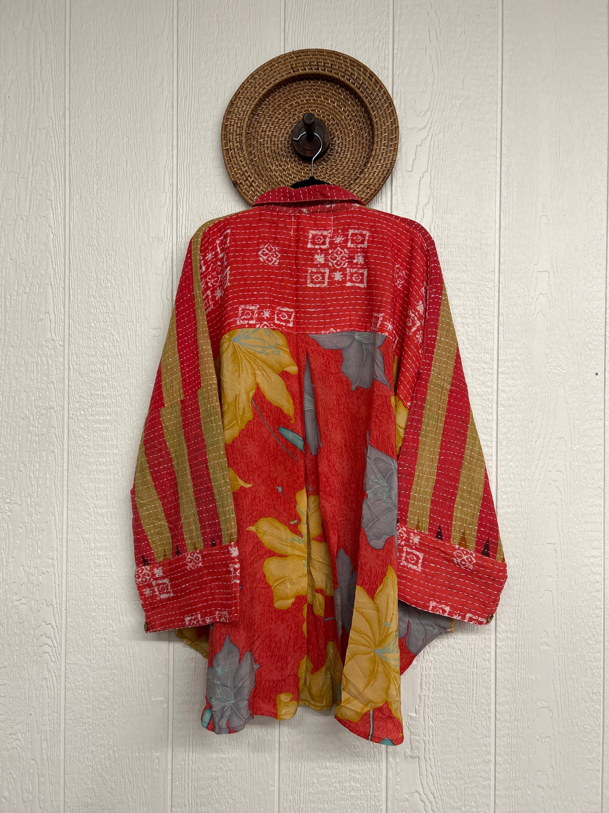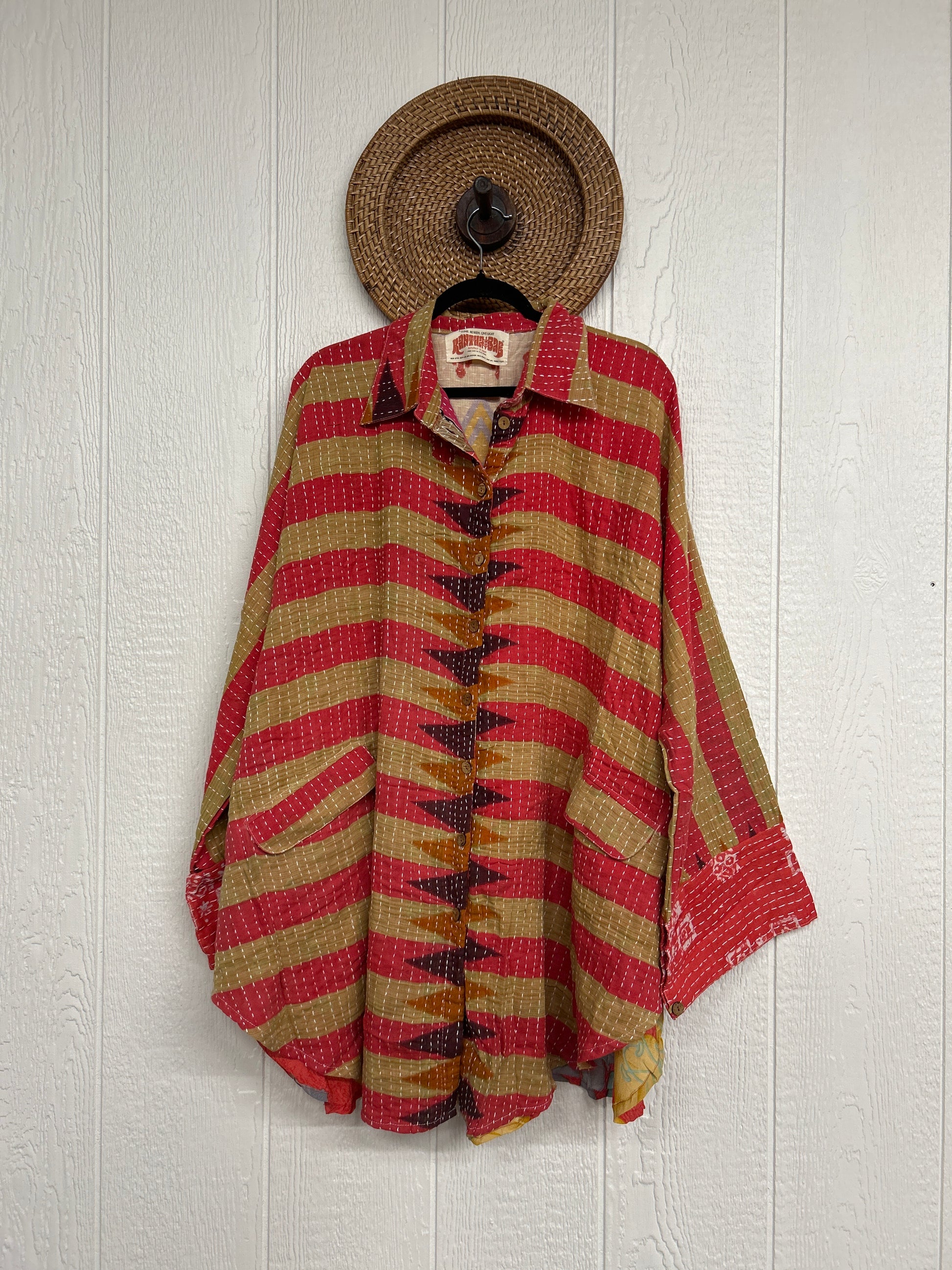 Made from our vintage cotton embroidered sari this billowy dream features a crepe panel in the back, functional buttons, two deep pockets in the front and a curved bottom.