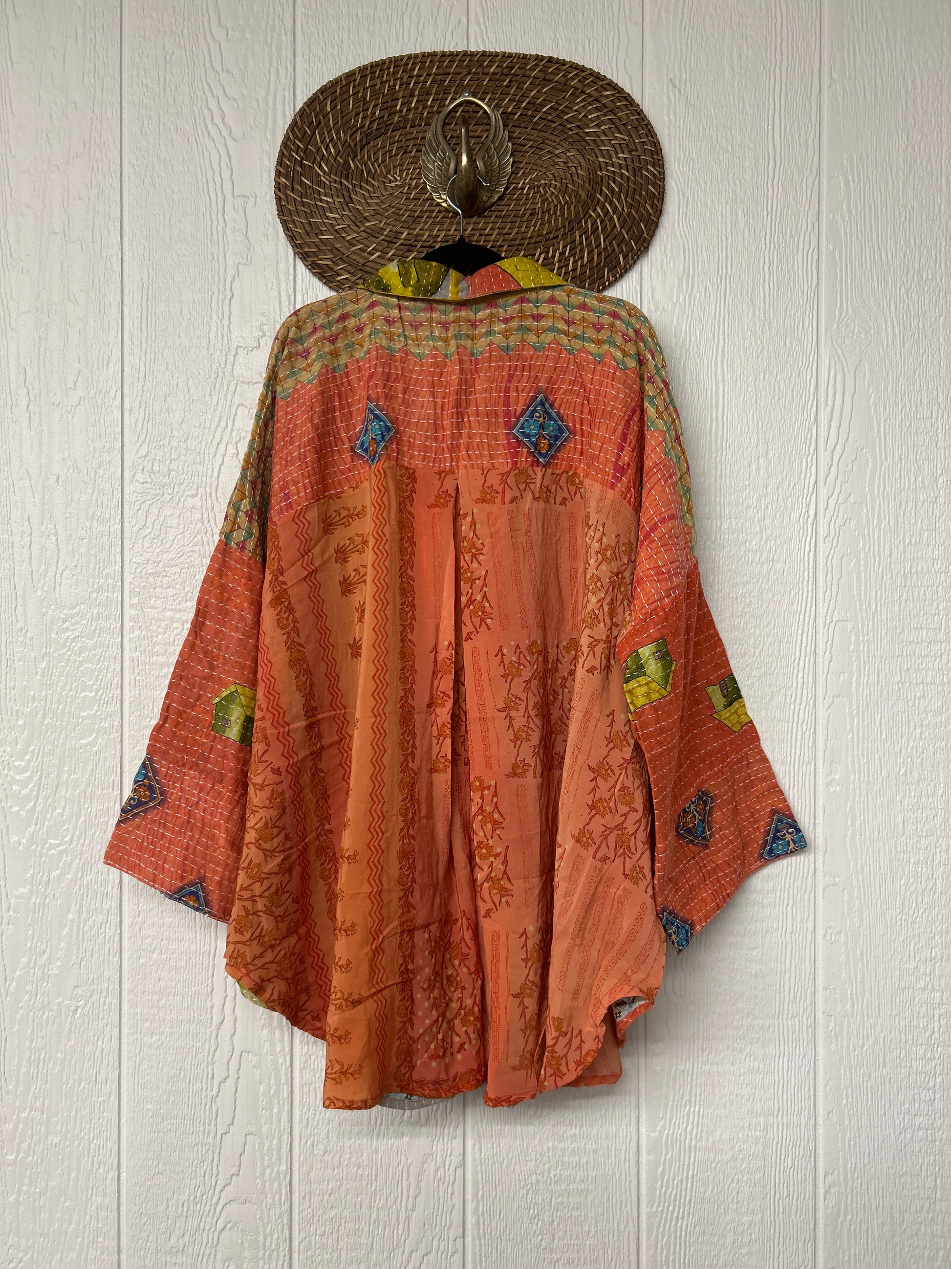 Made from our vintage cotton embroidered sari this billowy dream features a crepe panel in the back, functional buttons, two deep pockets in the front and a curved bottom.