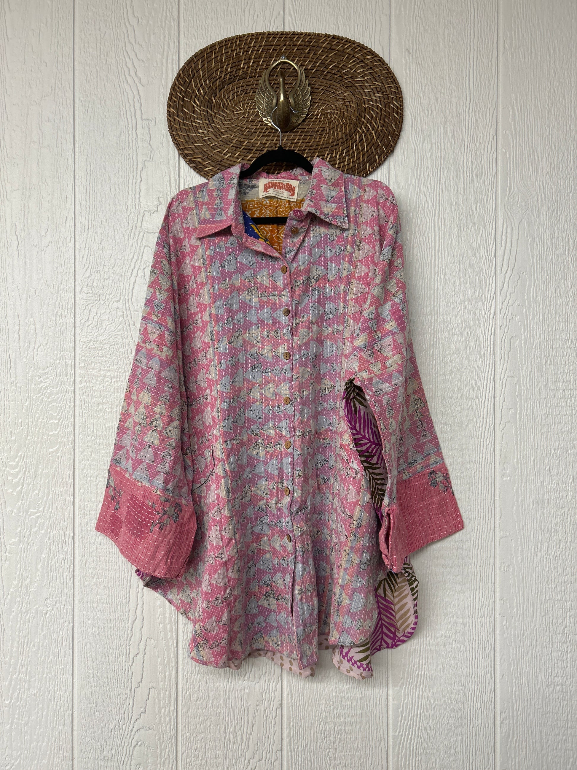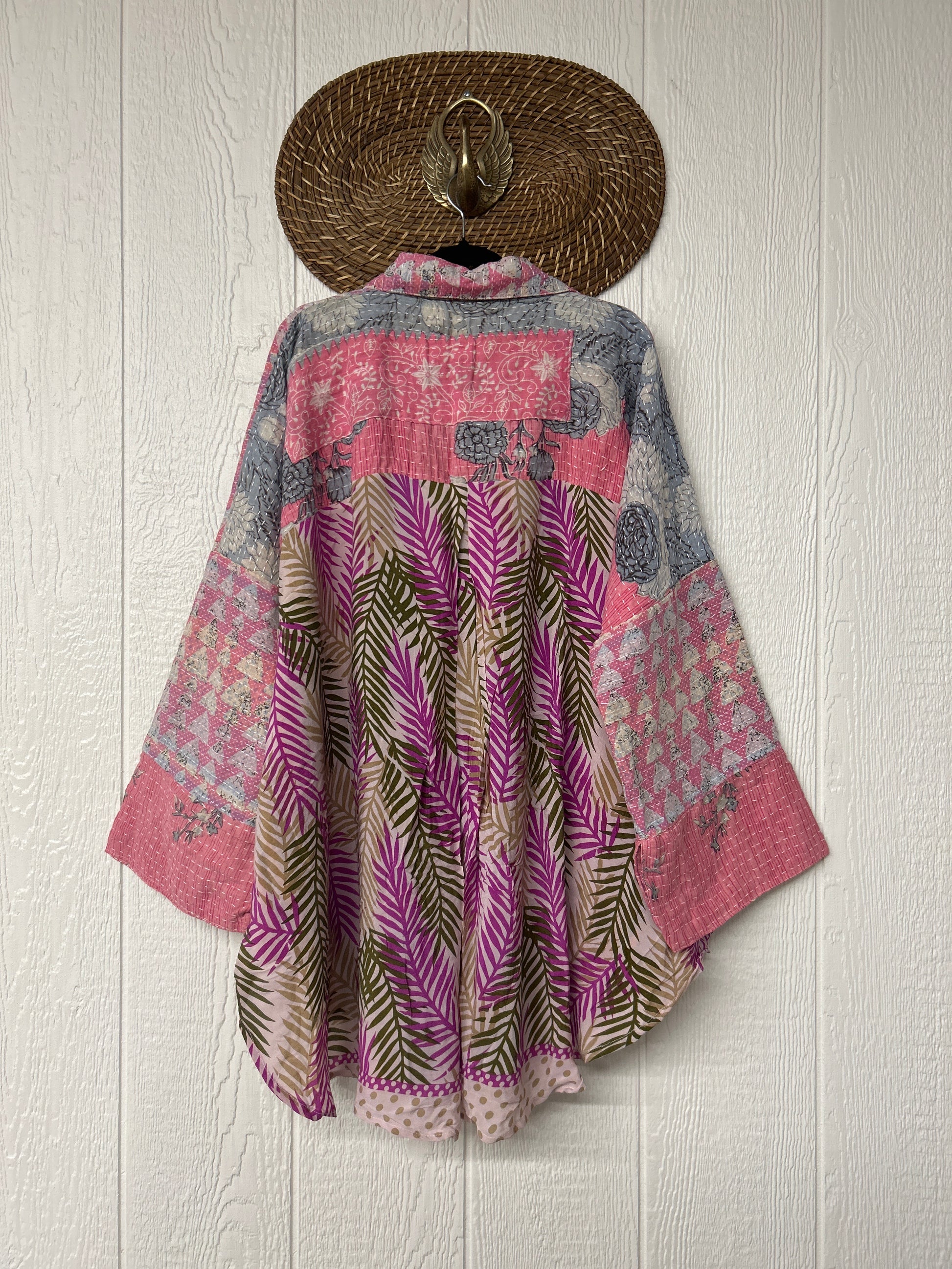 Made from our vintage cotton embroidered sari this billowy dream features a crepe panel in the back, functional buttons, two deep pockets in the front and a curved bottom.