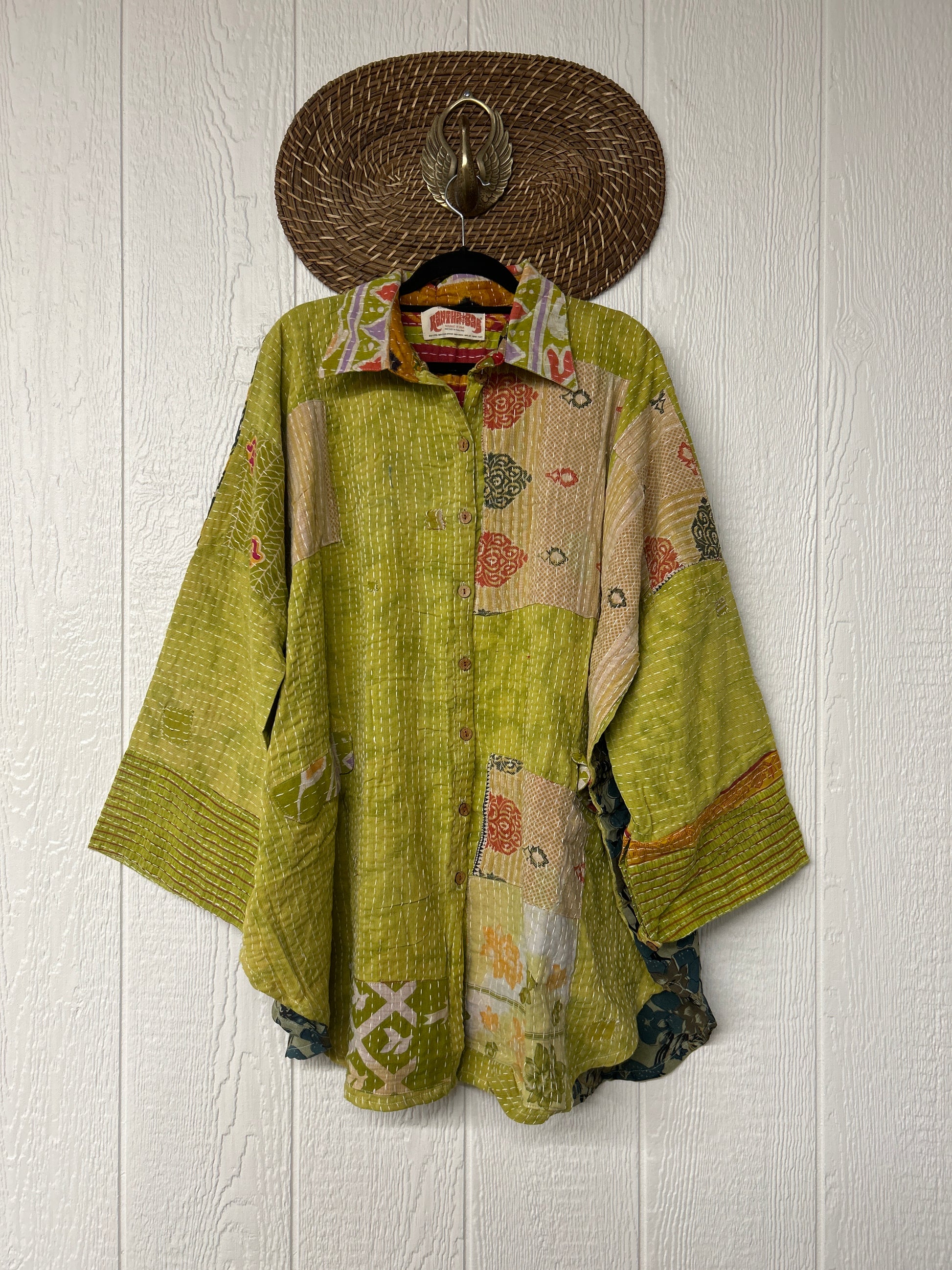 Made from our vintage cotton embroidered sari this billowy dream features a crepe panel in the back, functional buttons, two deep pockets in the front and a curved bottom.