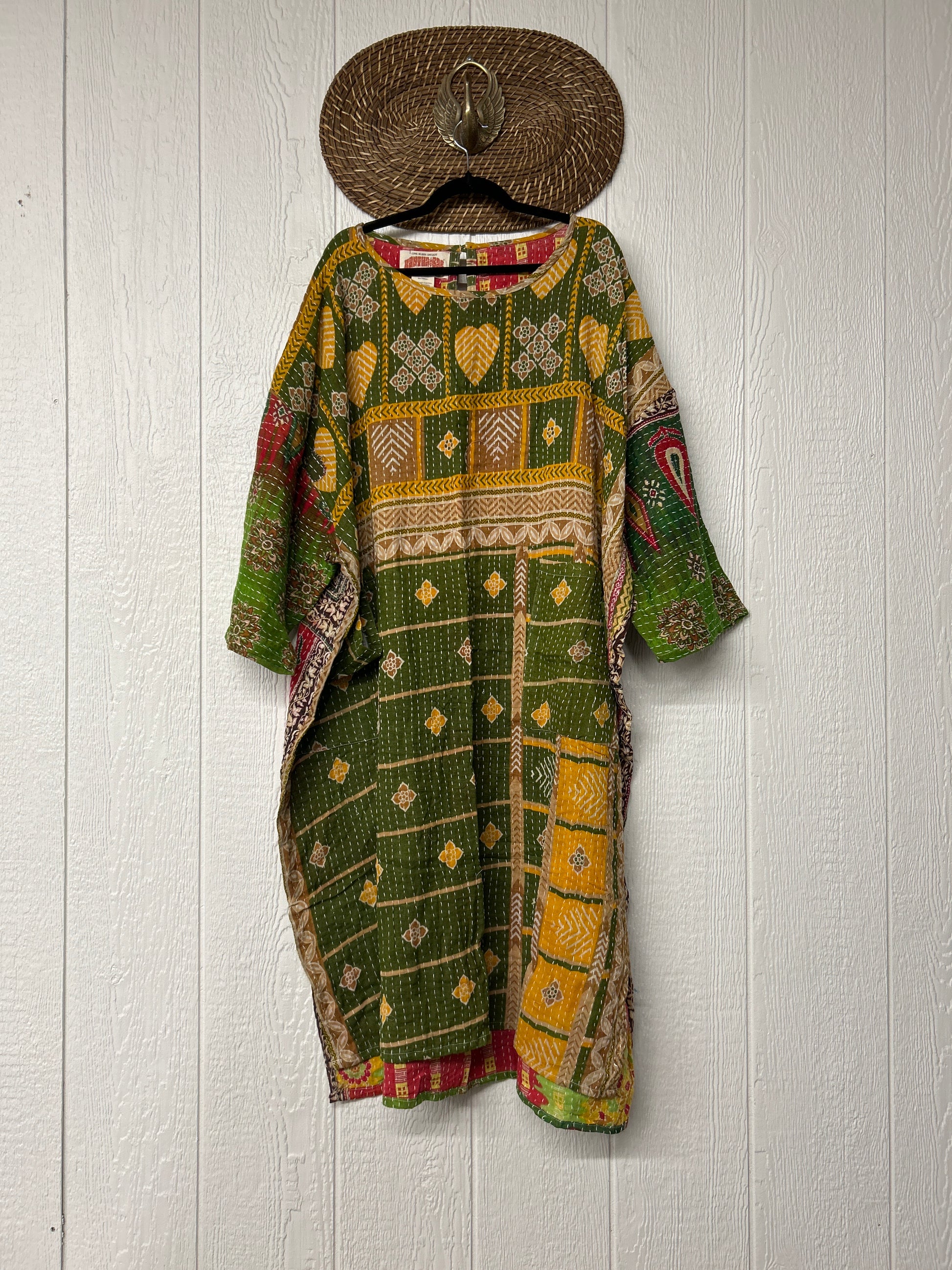 Crafted from our ultra lux vintage cotton kantha stitched sari this tunic is based on our best selling dream line pullover as a maxi!