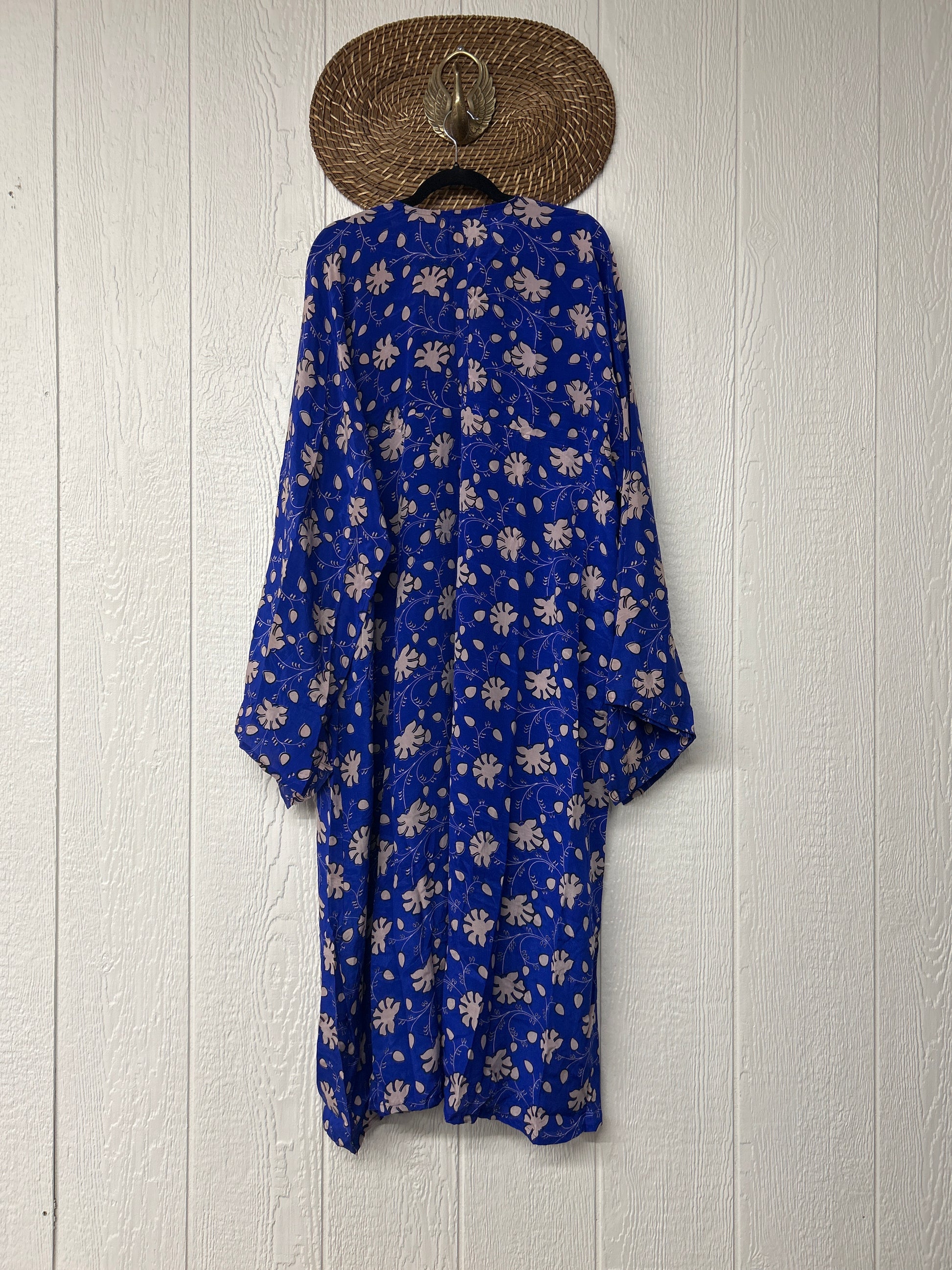 Crafted from our ultra lux vintage crepe sari this floaty dream features wide bell sleeves, deep v neckline, maxi silhouette with side slits for extra dimension.