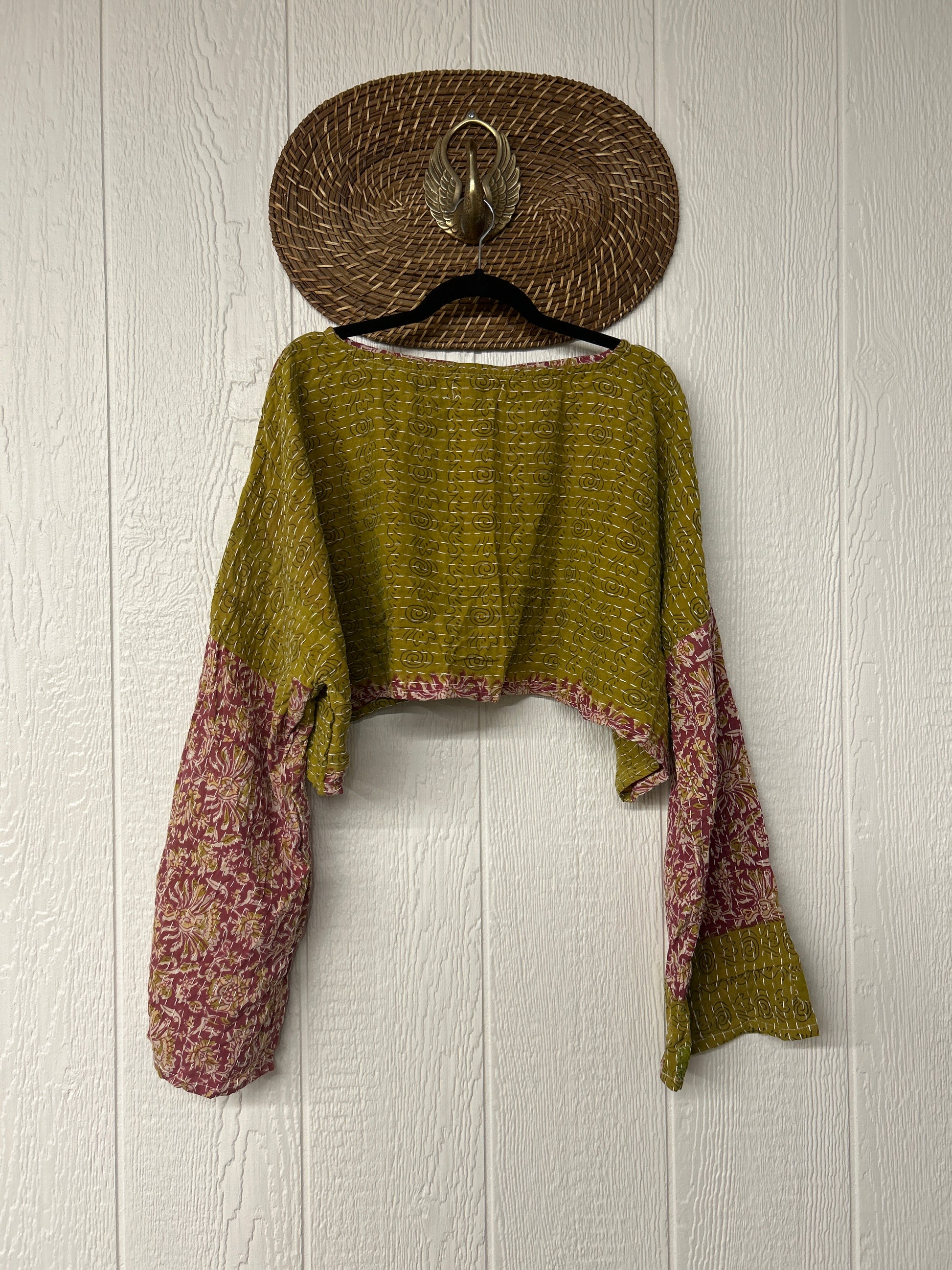 sari. Features long wide sleeves and a funky crop silhouette to wear with all your favorite KB bottoms.