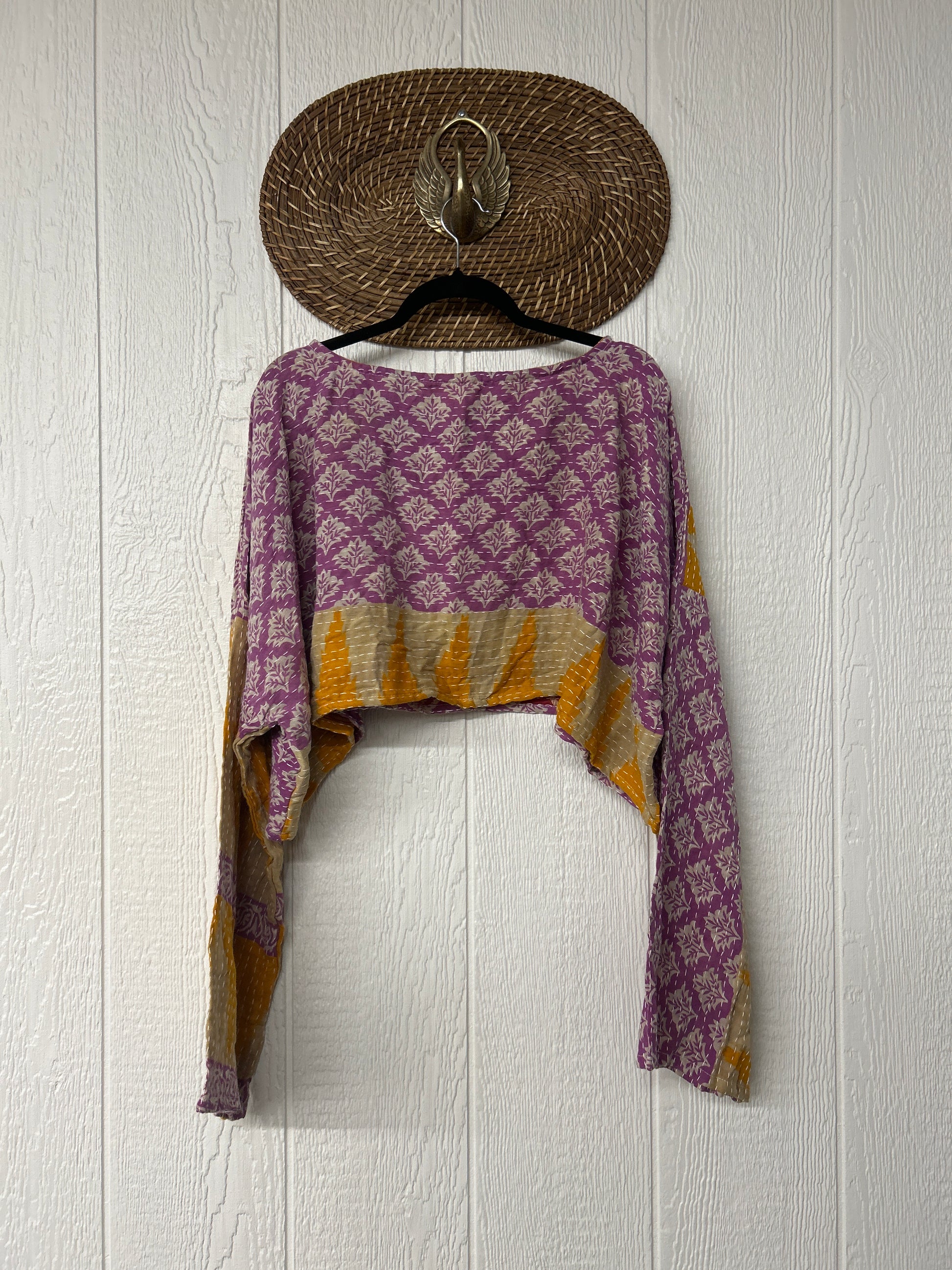sari. Features long wide sleeves and a funky crop silhouette to wear with all your favorite KB bottoms.