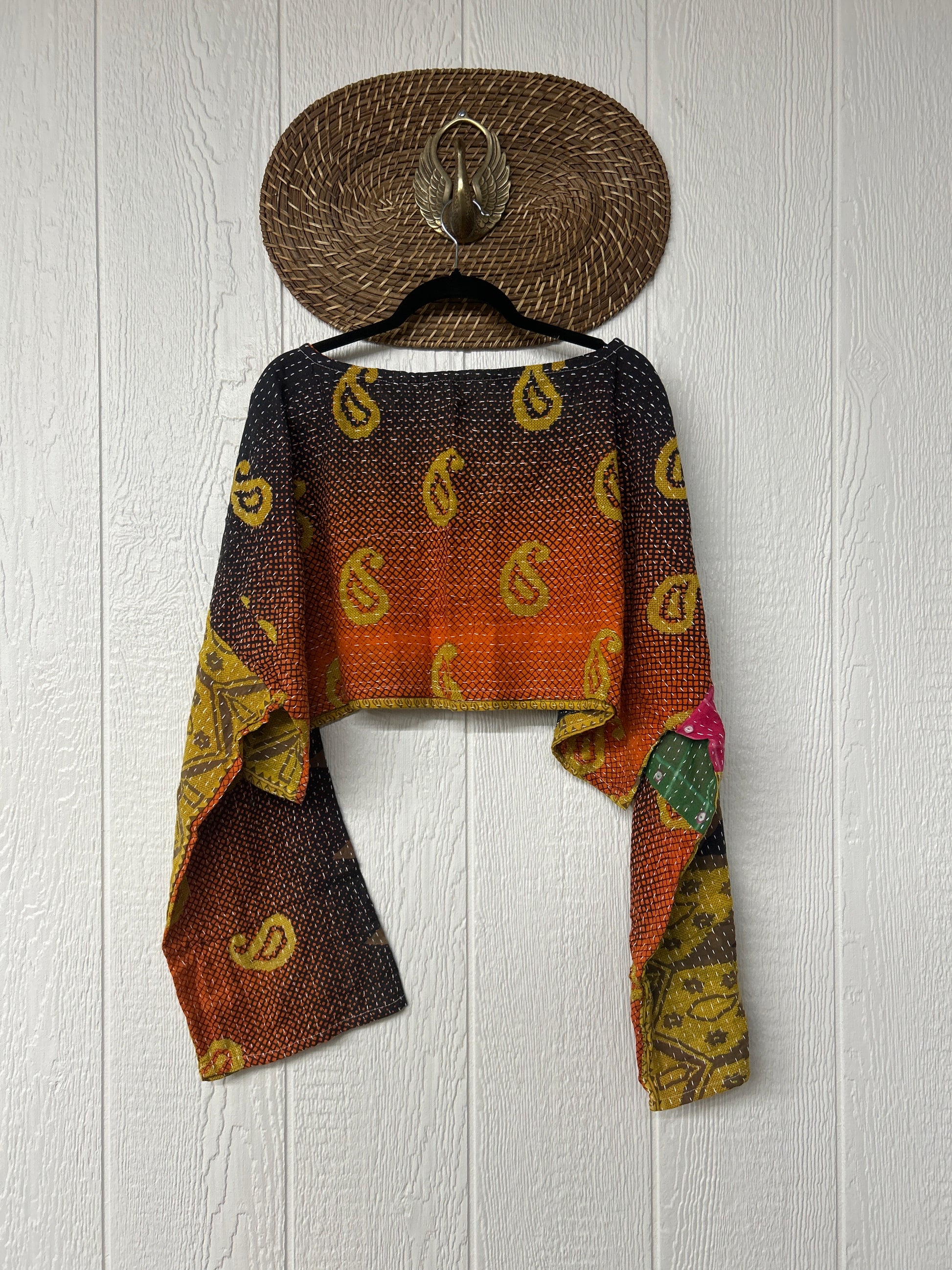 sari. Features long wide sleeves and a funky crop silhouette to wear with all your favorite KB bottoms.