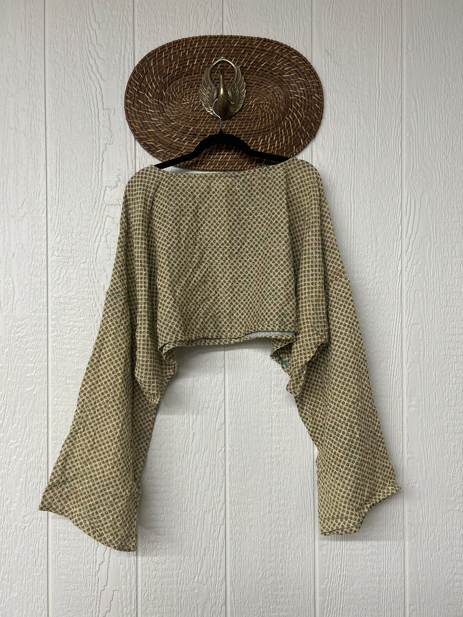 sari. Features long wide sleeves and a funky crop silhouette to wear with all your favorite KB bottoms.