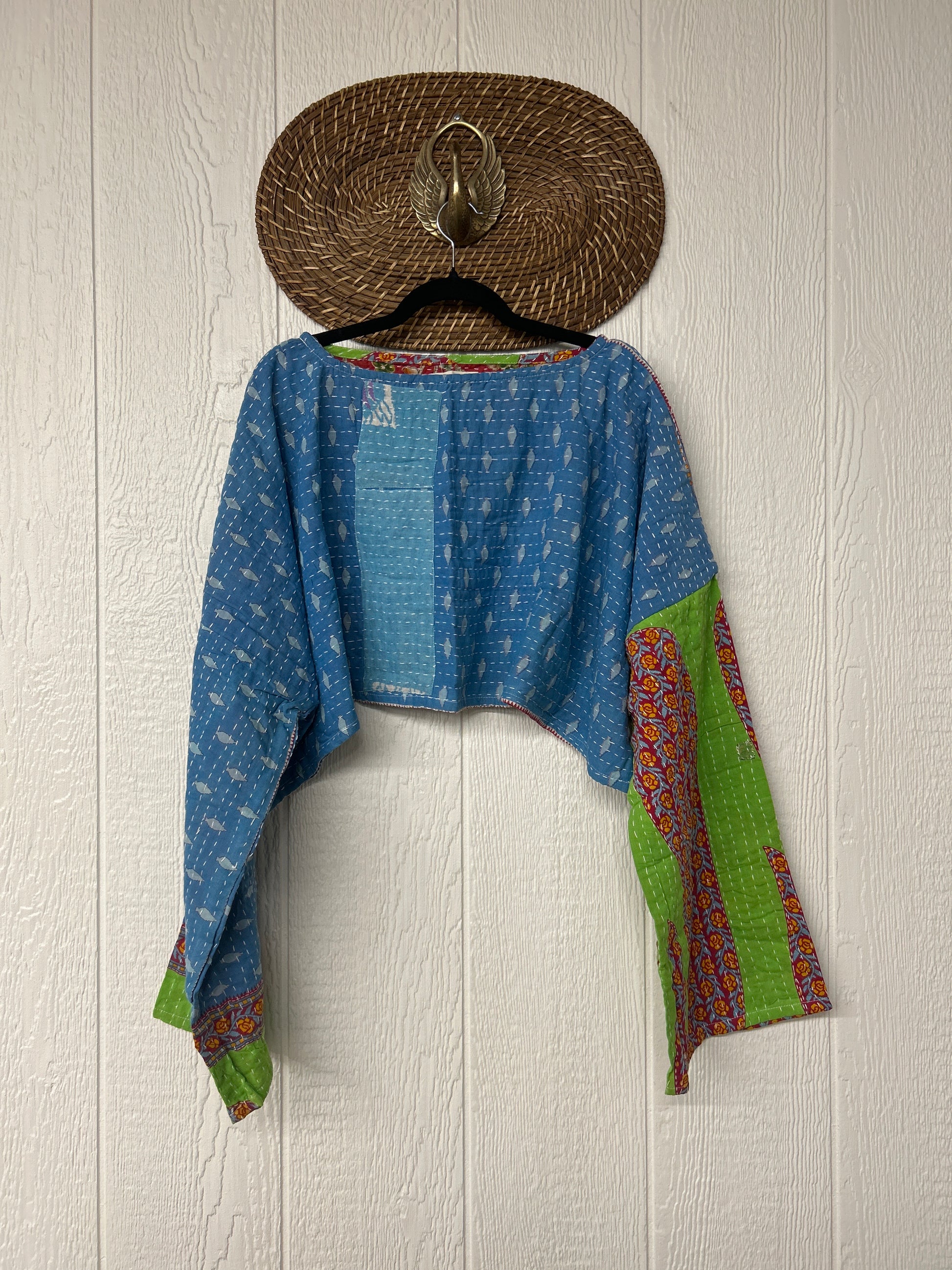 sari. Features long wide sleeves and a funky crop silhouette to wear with all your favorite KB bottoms.