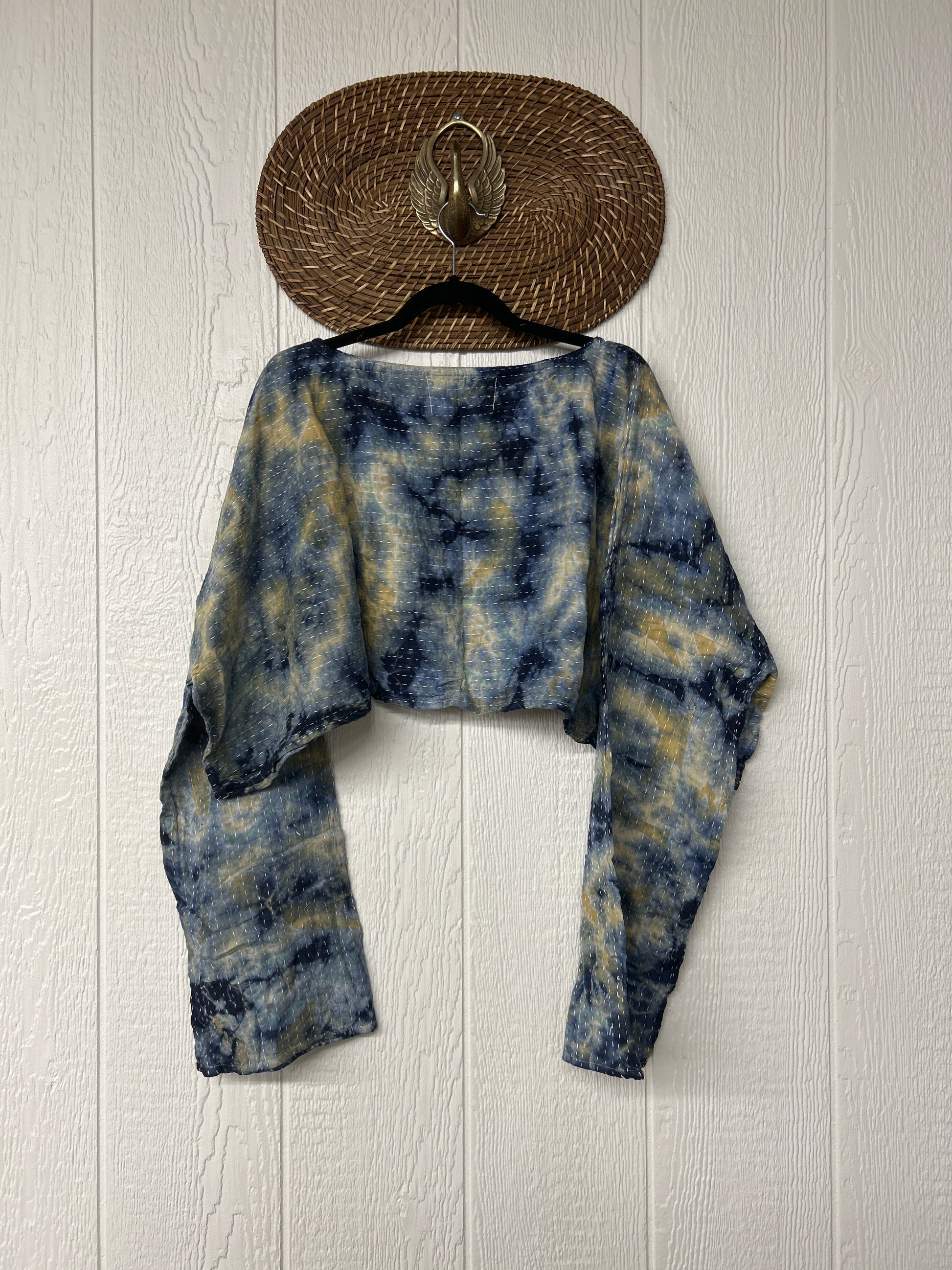sari. Features long wide sleeves and a funky crop silhouette to wear with all your favorite KB bottoms.