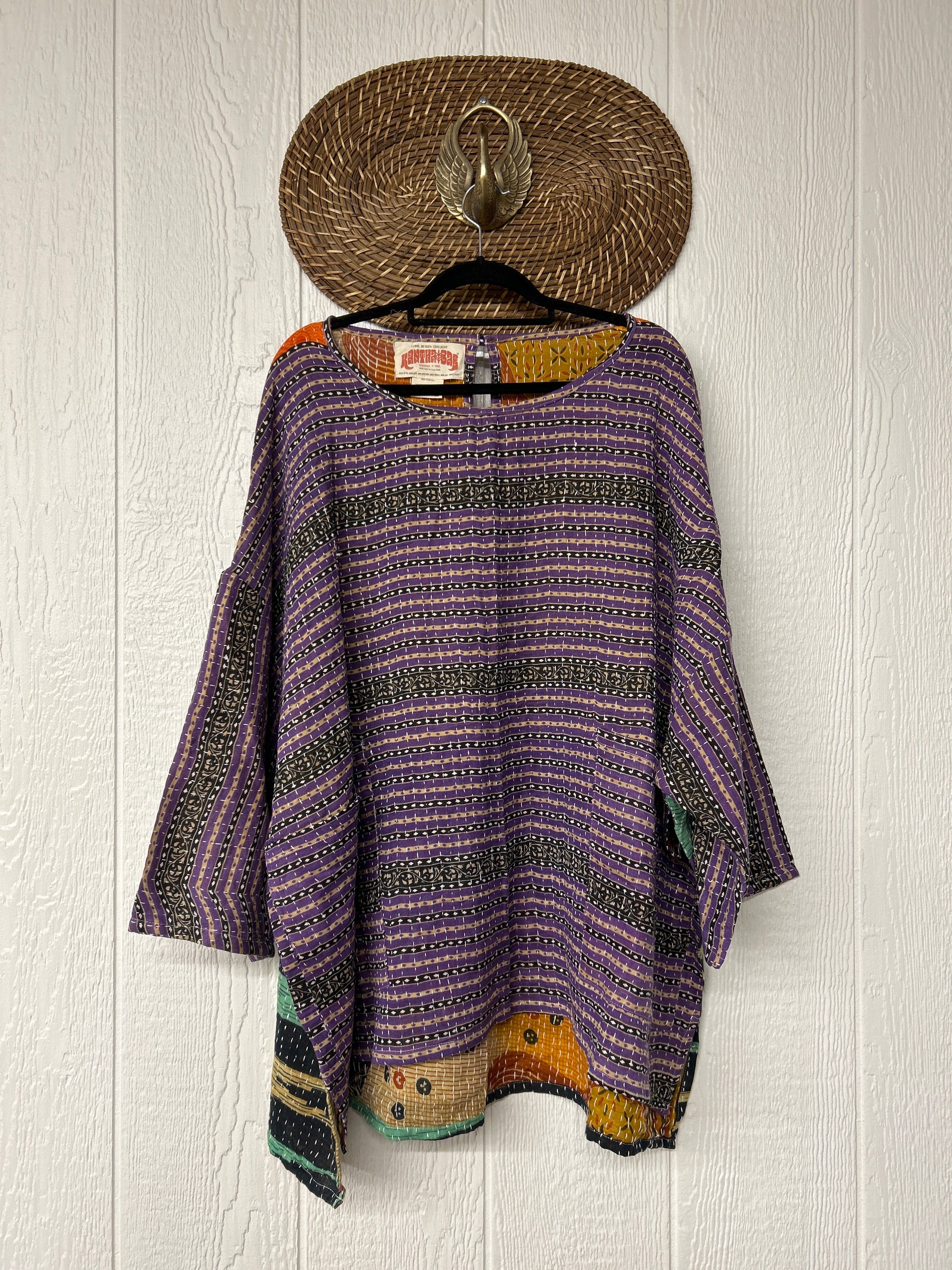 Crafted from our ultra lux vintage cotton kantha stitched sari this tunic is based on our best selling dream line pullover.