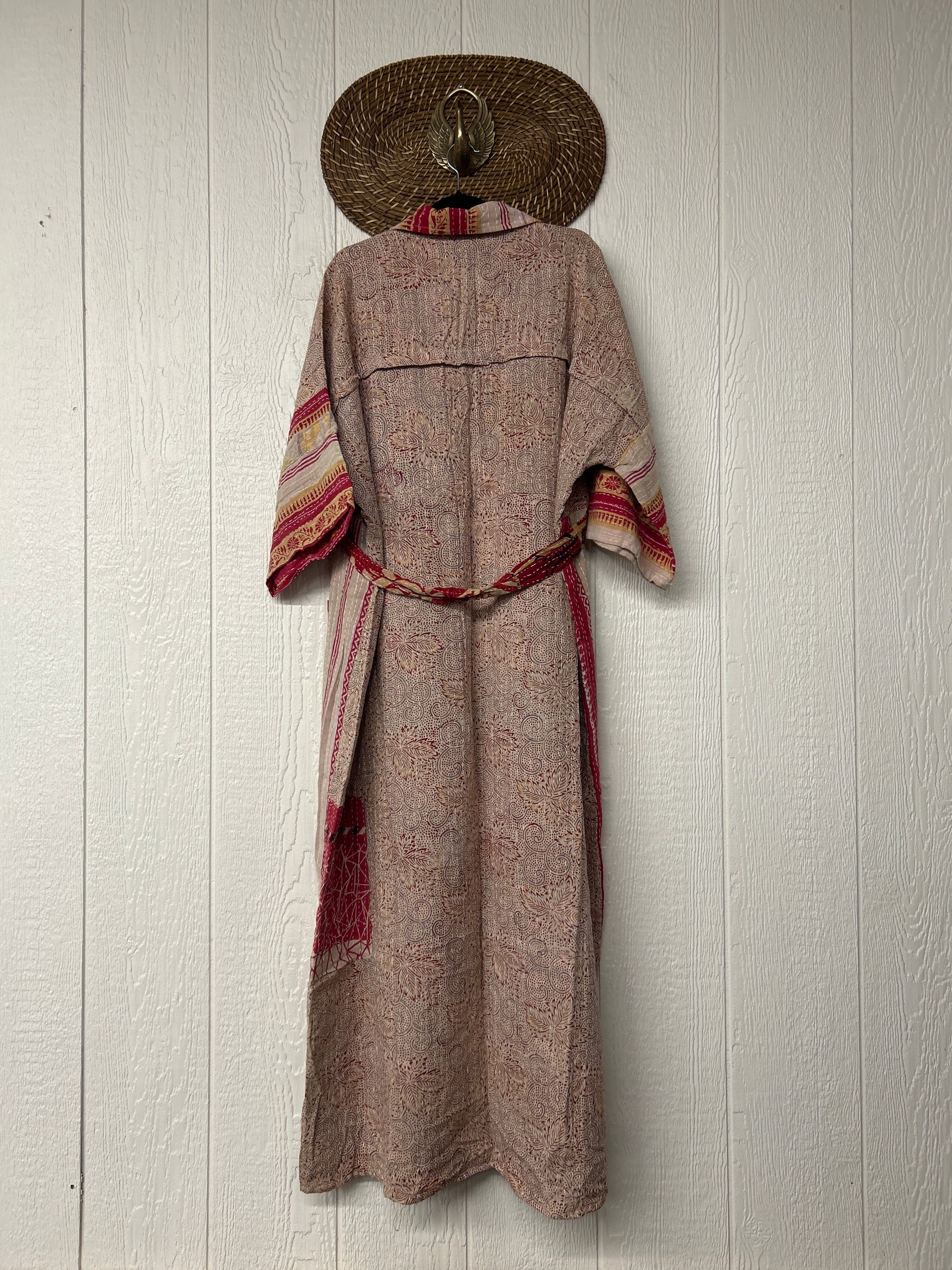 Crafted from our ultra-luxe Kantha stitch vintage cotton sari the Gravity Duster Dress features a button down front placket, adjustable belt.