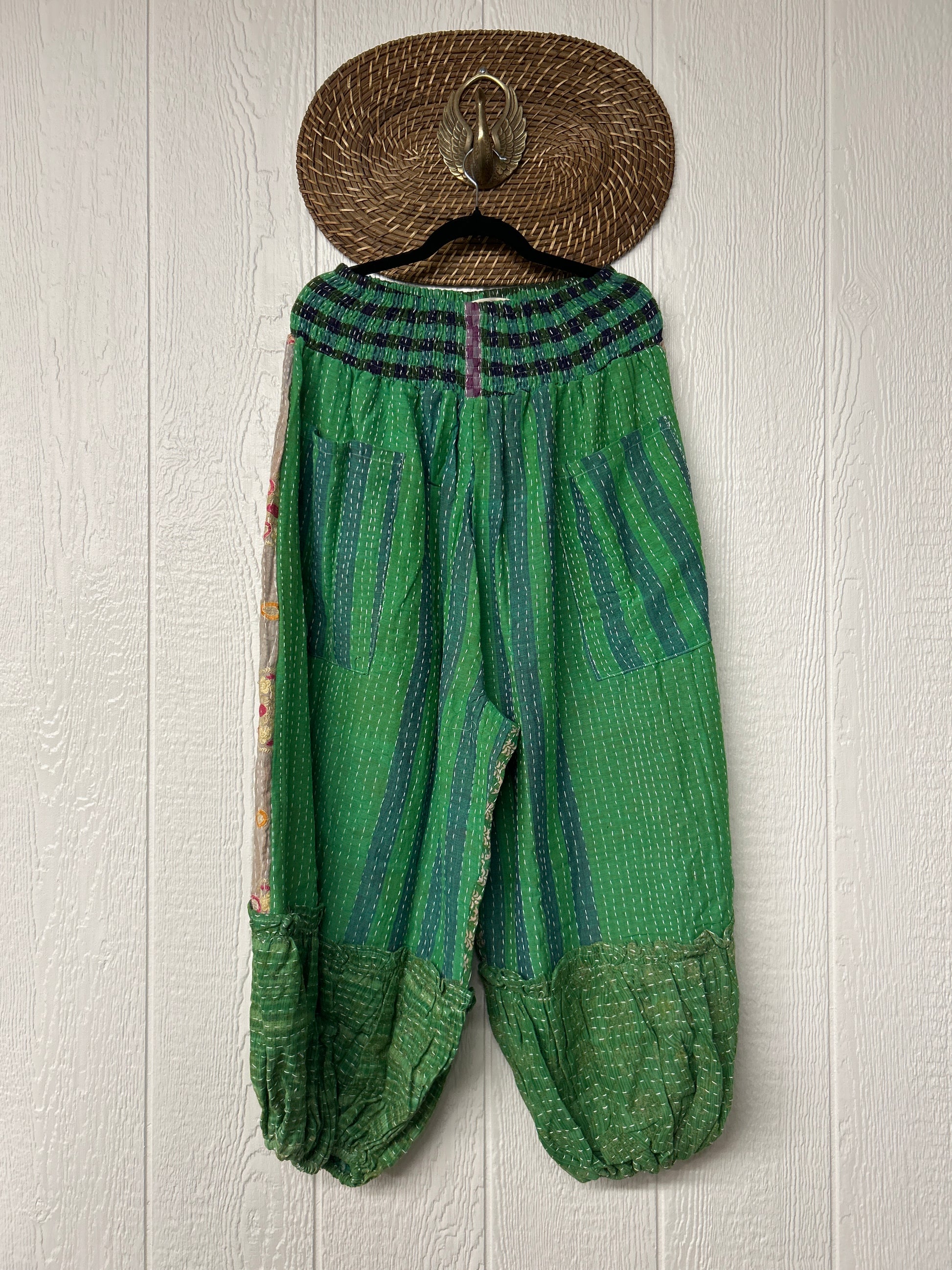 Crafted from our ultra lux kantha stitched vintage cotton sari these pants feature exterior slouchy pockets, a stretchy waistband and an elastic ankle opening. Dress these dream pants up or down to become the ultimate vibe!