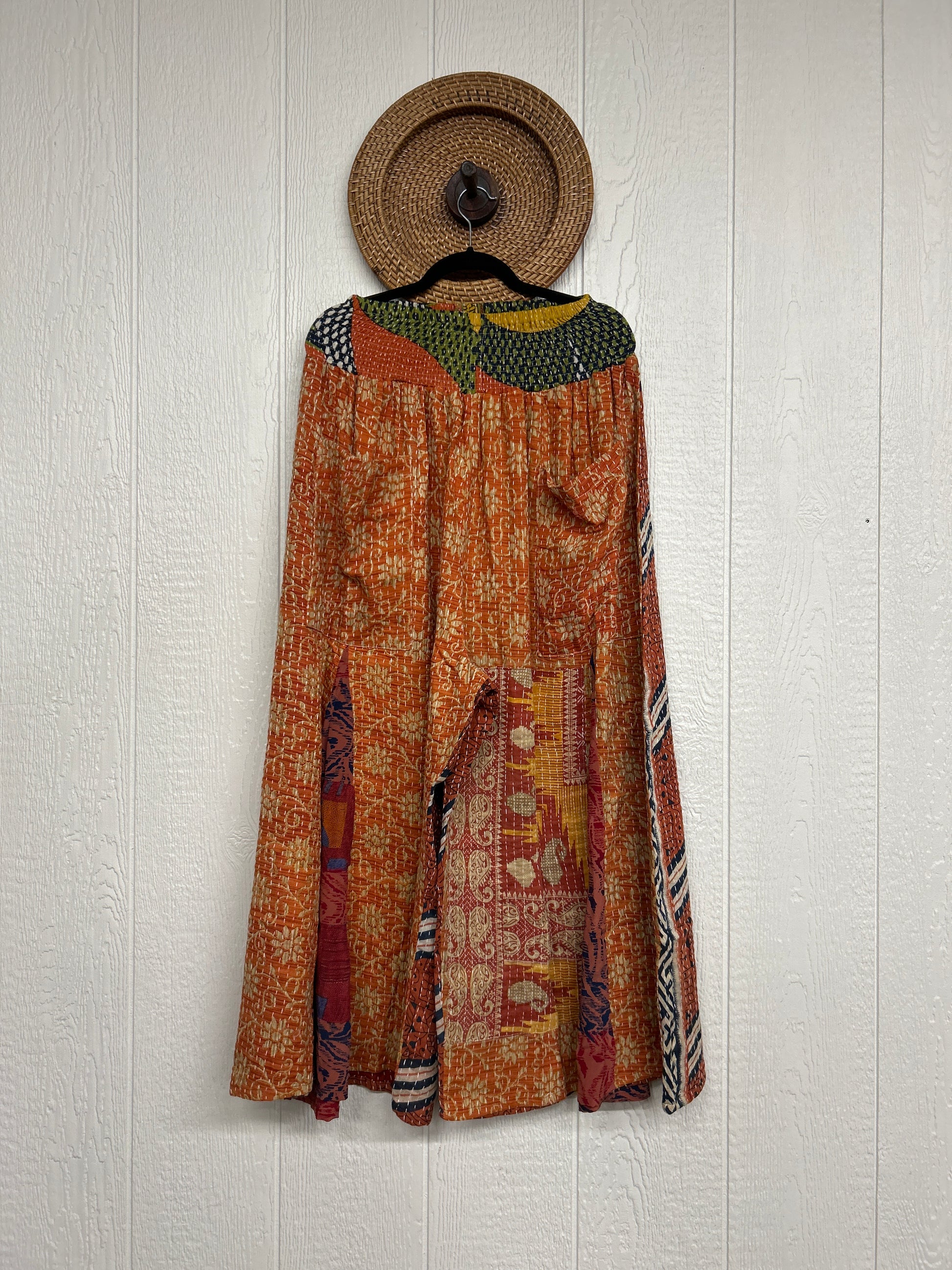 Crafted from our ultra lux vintage cotton kantha stitched sari these floaty pants feature super wide legs with front and back vintage crepe inserts that make your pants dance when you walk. Front slouchy pockets are deep enough to fill with your treasures.