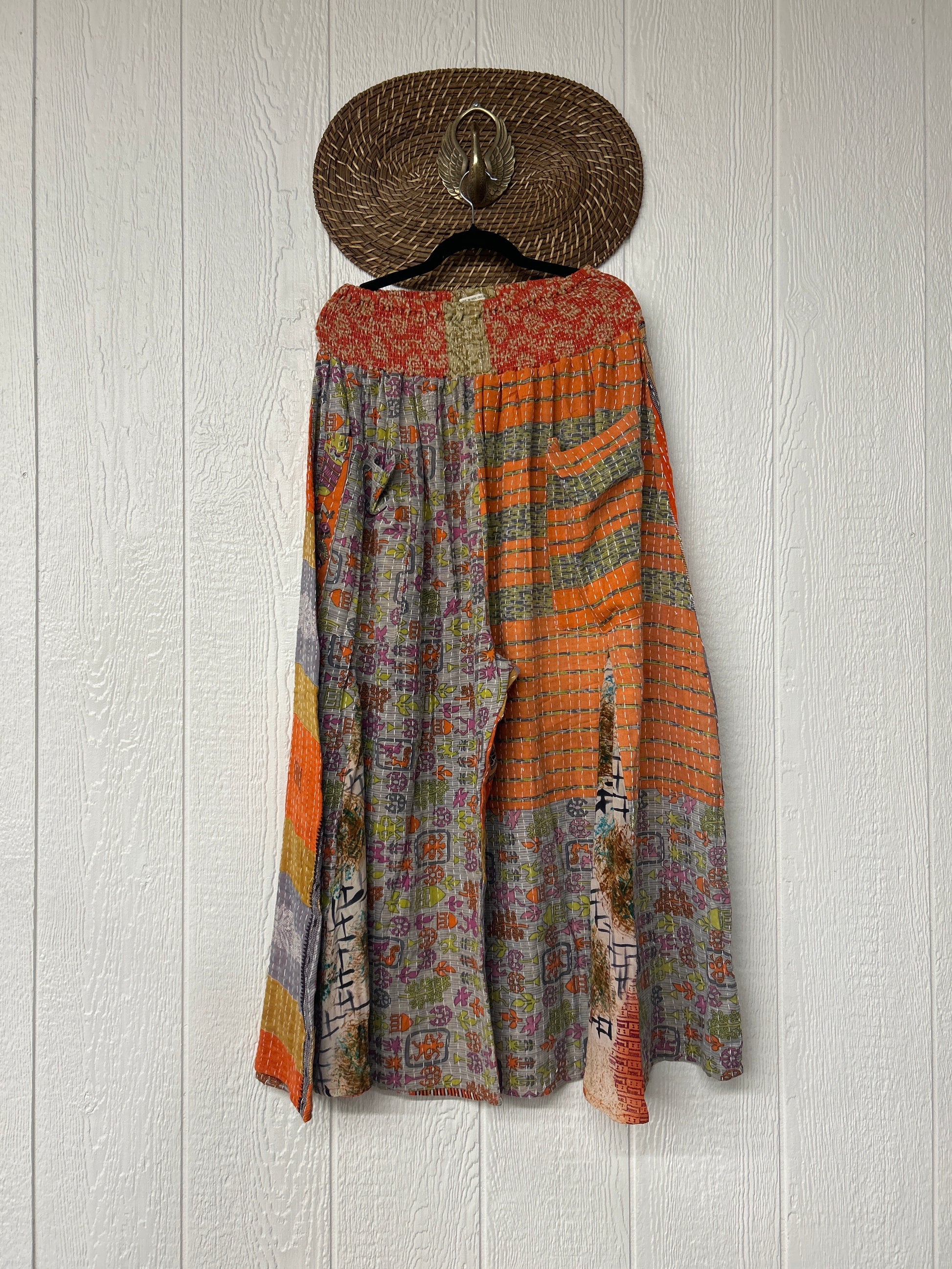 Crafted from our ultra lux vintage cotton kantha stitched sari these floaty pants feature super wide legs with front and back vintage crepe inserts that make your pants dance when you walk. Front slouchy pockets are deep enough to fill with your treasures.