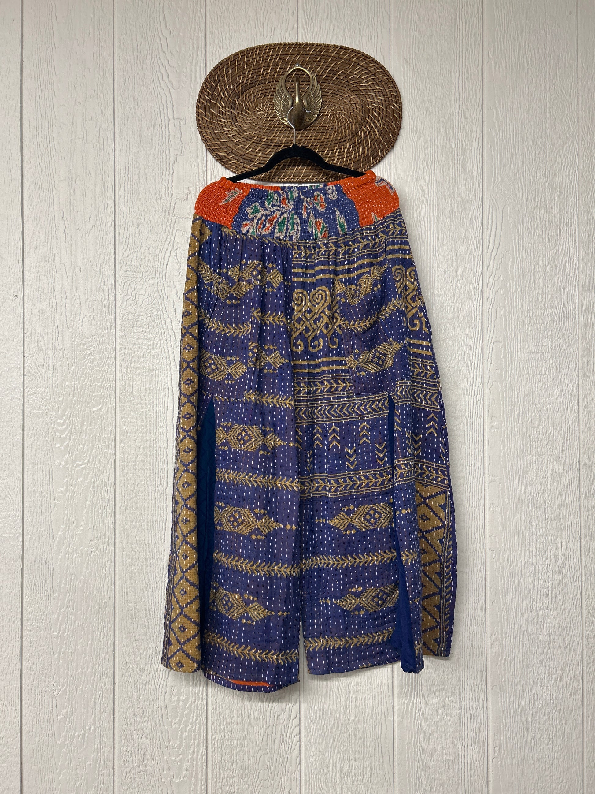 Crafted from our ultra lux vintage cotton kantha stitched sari these floaty pants feature super wide legs with front and back vintage crepe inserts that make your pants dance when you walk. Front slouchy pockets are deep enough to fill with your treasures.