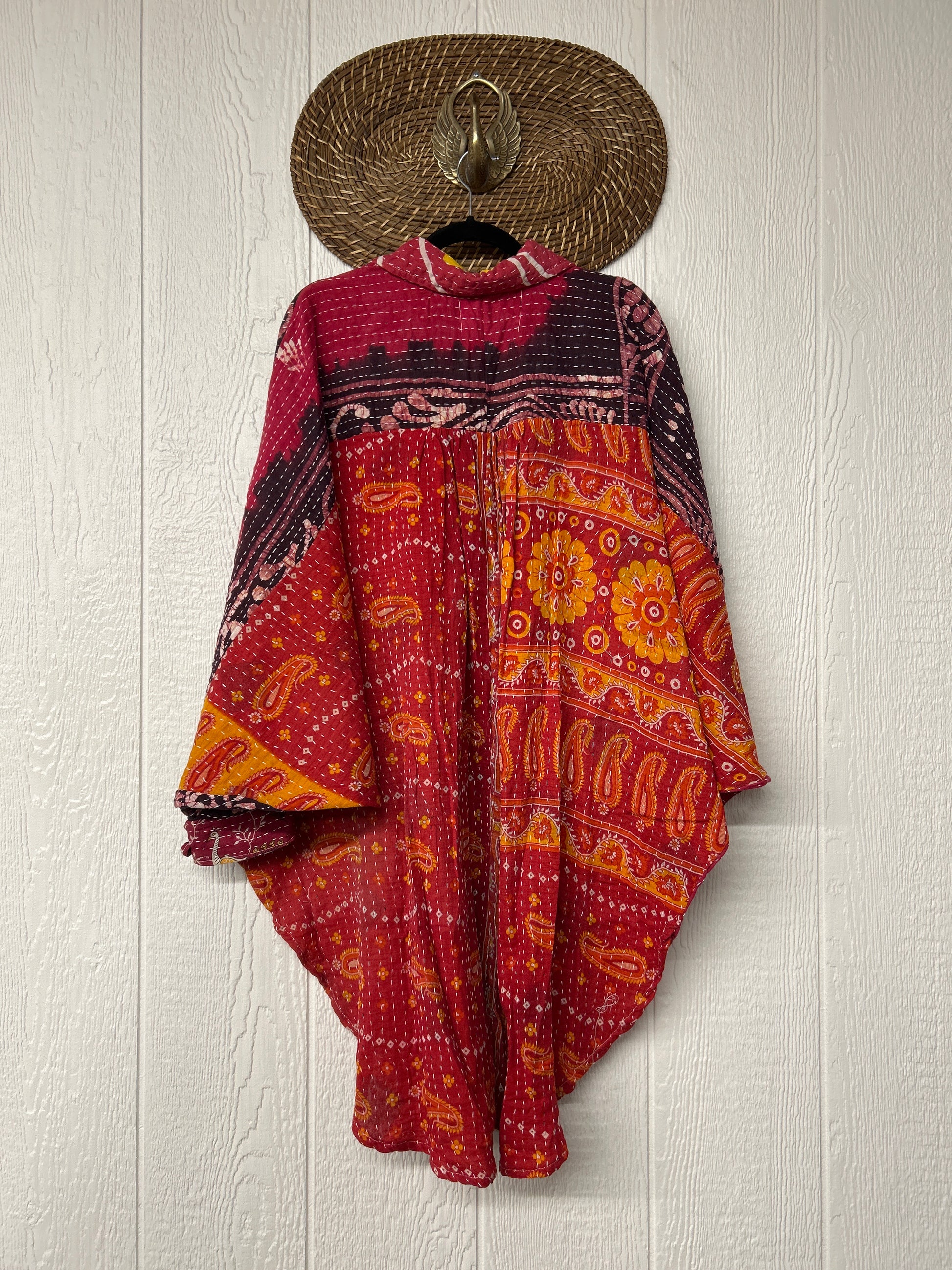 Made from our hand kantha stitched vintage cotton sari, this piece of wearable art features a henley neckline with functional buttons, slouchy outer pockets, billowy sleeves and a rounded hemline. The perfect top to compliment your favorite kantha pants or bell bottoms.