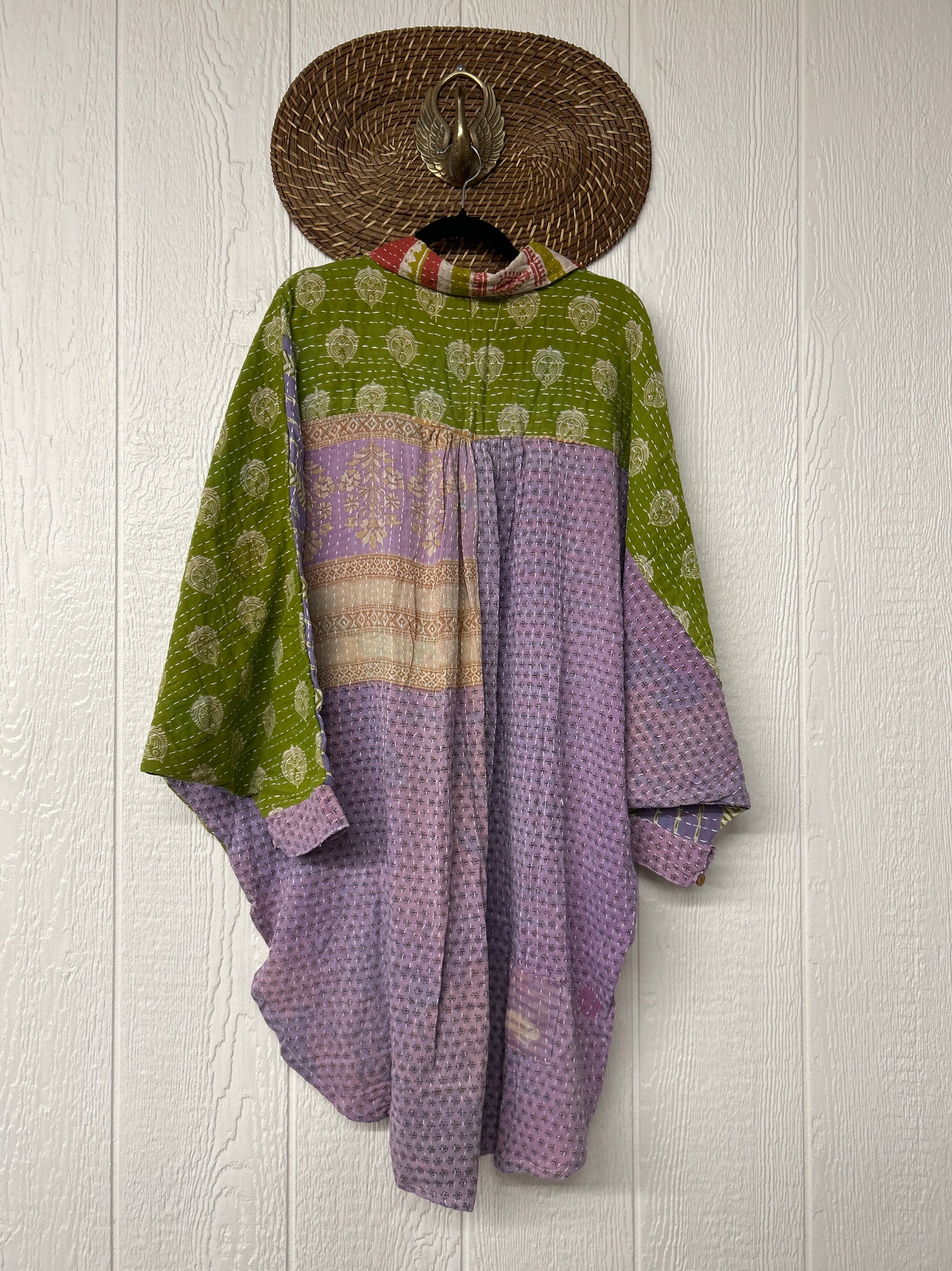 Made from our hand kantha stitched vintage cotton sari, this piece of wearable art features a henley neckline with functional buttons, slouchy outer pockets, billowy sleeves and a rounded hemline. The perfect top to compliment your favorite kantha pants or bell bottoms.