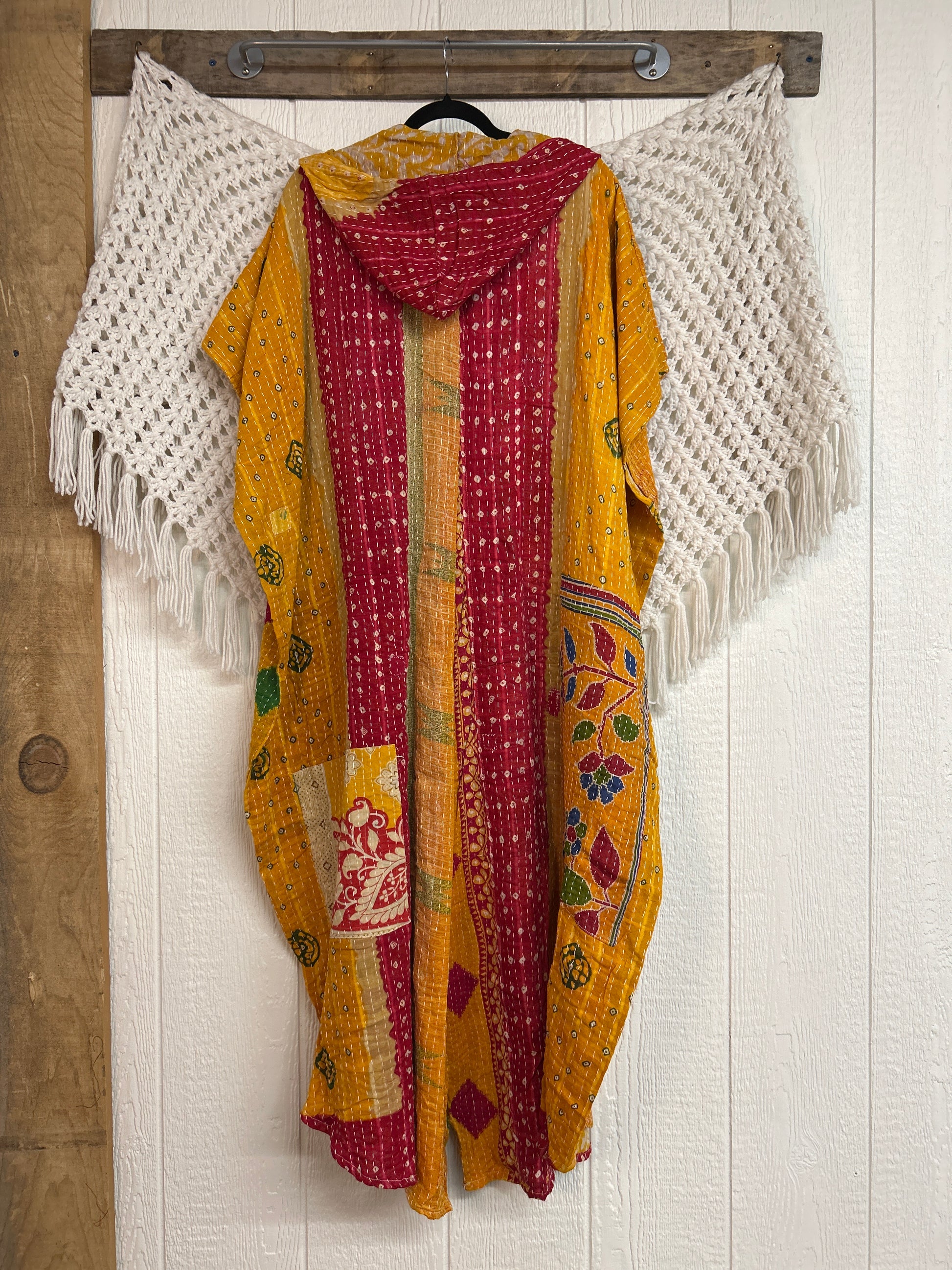 Disclosure: Our vintage styles have lived a full life before becoming the designs in our shop. Fabrics may have small threads or holes in the layers. Color inconsistency or small stains may be present. The saris are sewn together and extend the life of each design. Imperfections should be celebrated