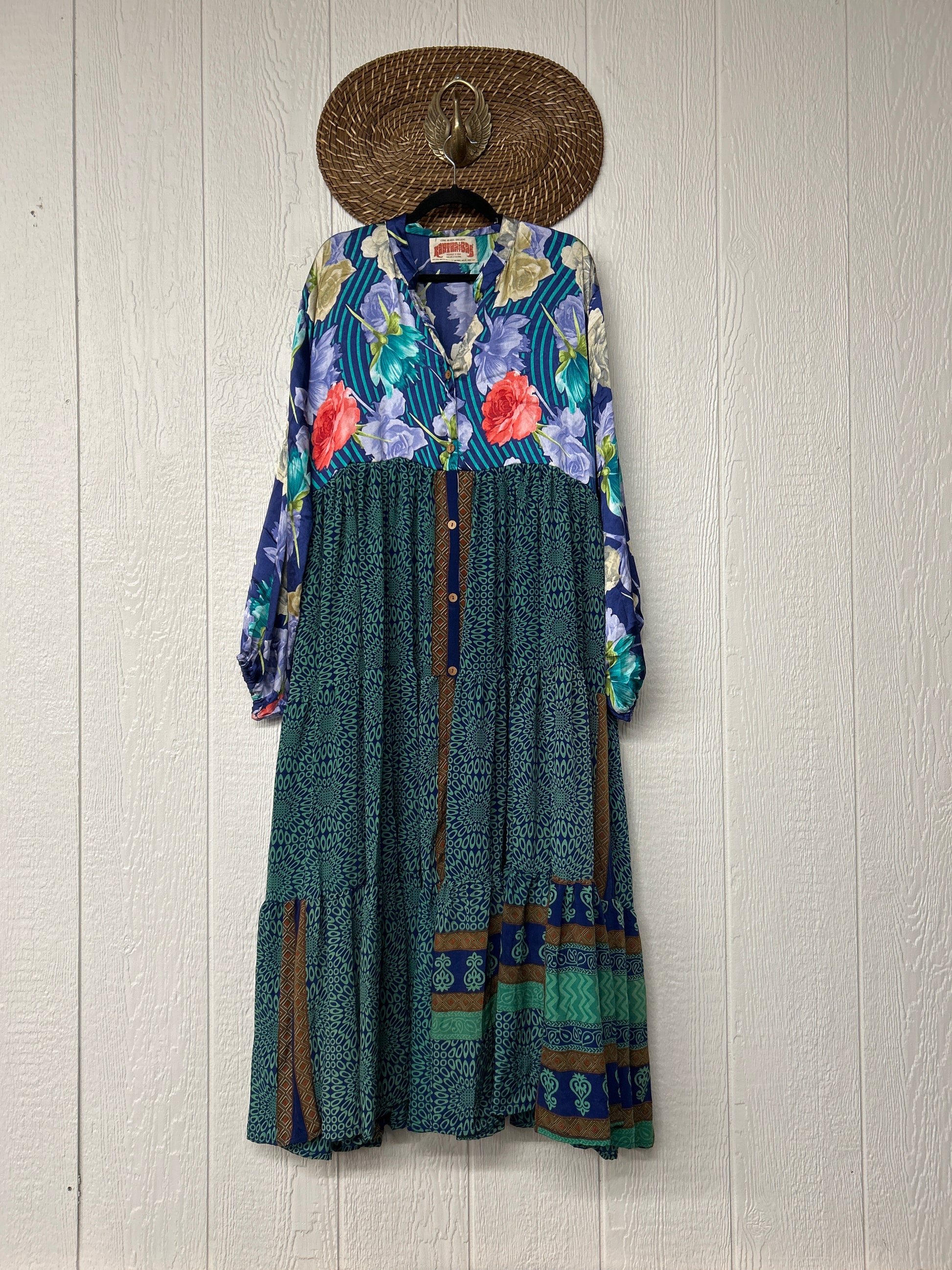 Disclosure: Our vintage styles have lived a full life before becoming the designs in our shop. Fabrics may have small threads or holes in the layers. Color inconsistency or small stains may be present. The saris are sewn together and extend the life of each design.