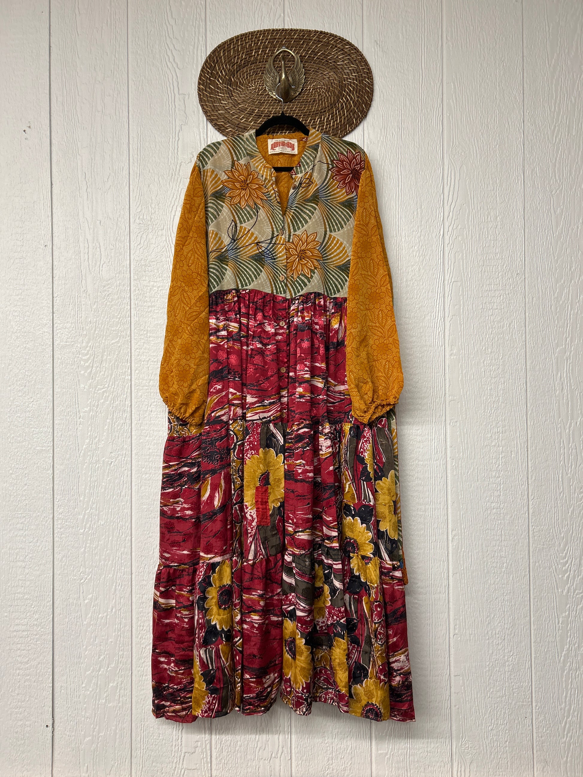 Disclosure: Our vintage styles have lived a full life before becoming the designs in our shop. Fabrics may have small threads or holes in the layers. Color inconsistency or small stains may be present. The saris are sewn together and extend the life of each design.
