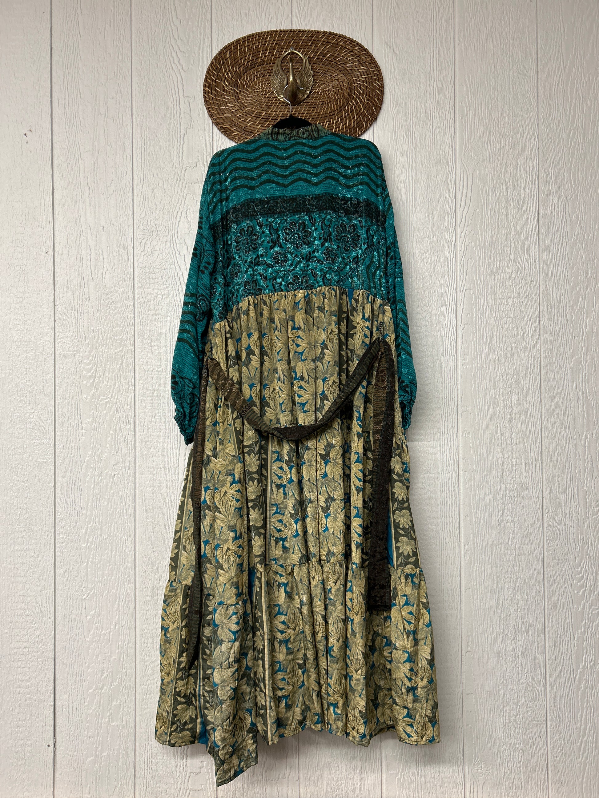 Disclosure: Our vintage styles have lived a full life before becoming the designs in our shop. Fabrics may have small threads or holes in the layers. Color inconsistency or small stains may be present. The saris are sewn together and extend the life of each design.