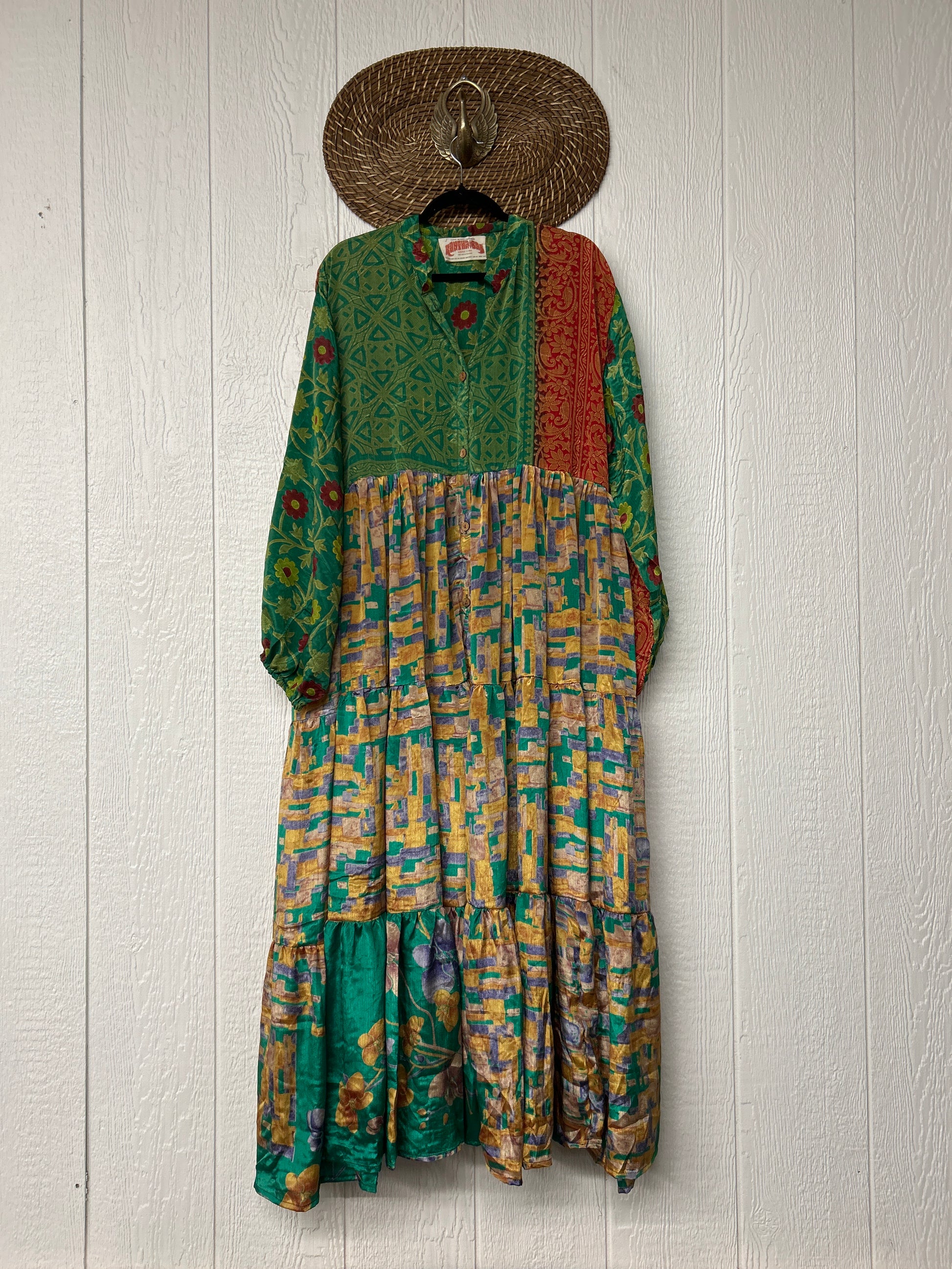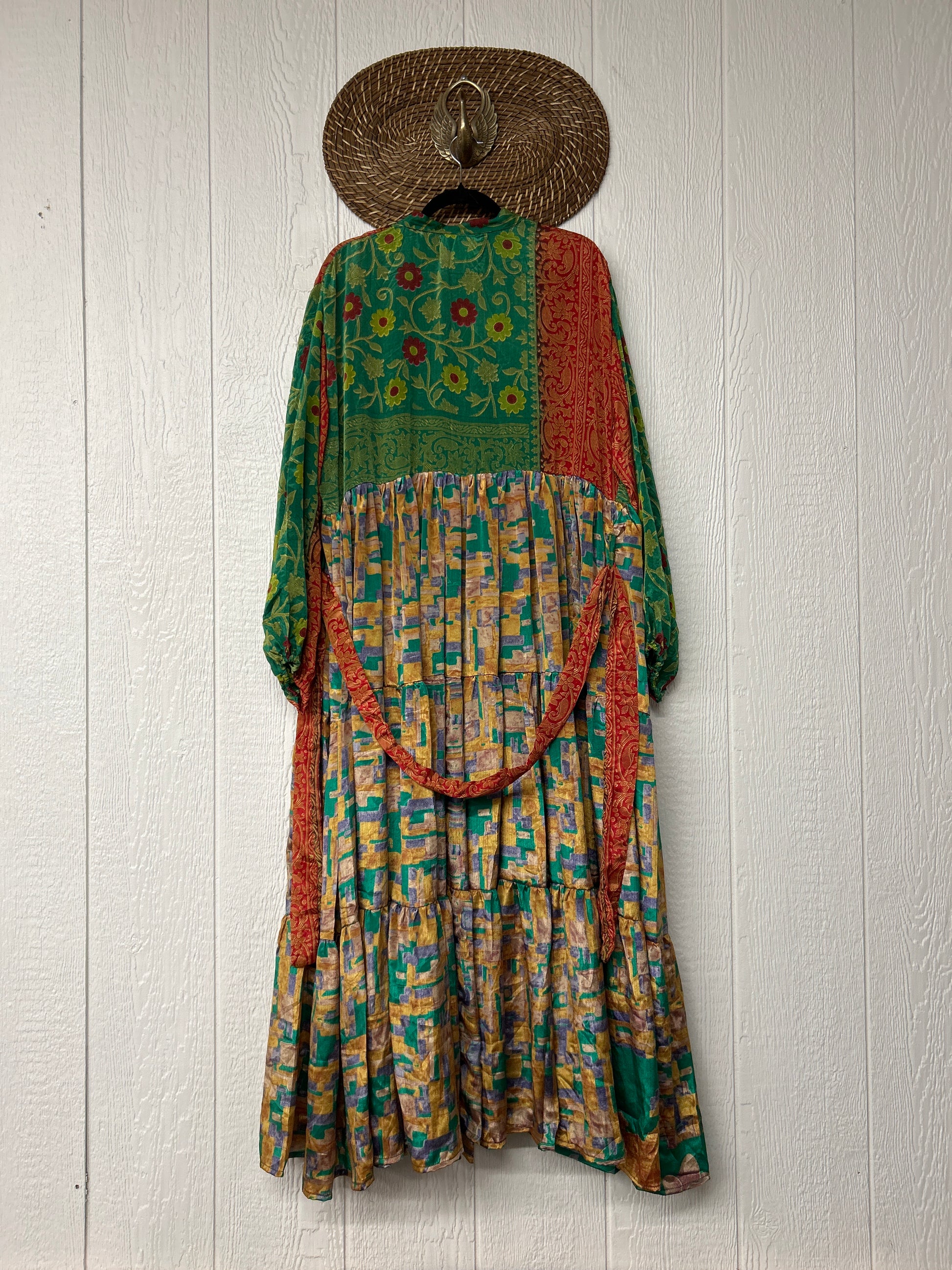 Disclosure: Our vintage styles have lived a full life before becoming the designs in our shop. Fabrics may have small threads or holes in the layers. Color inconsistency or small stains may be present. The saris are sewn together and extend the life of each design.
