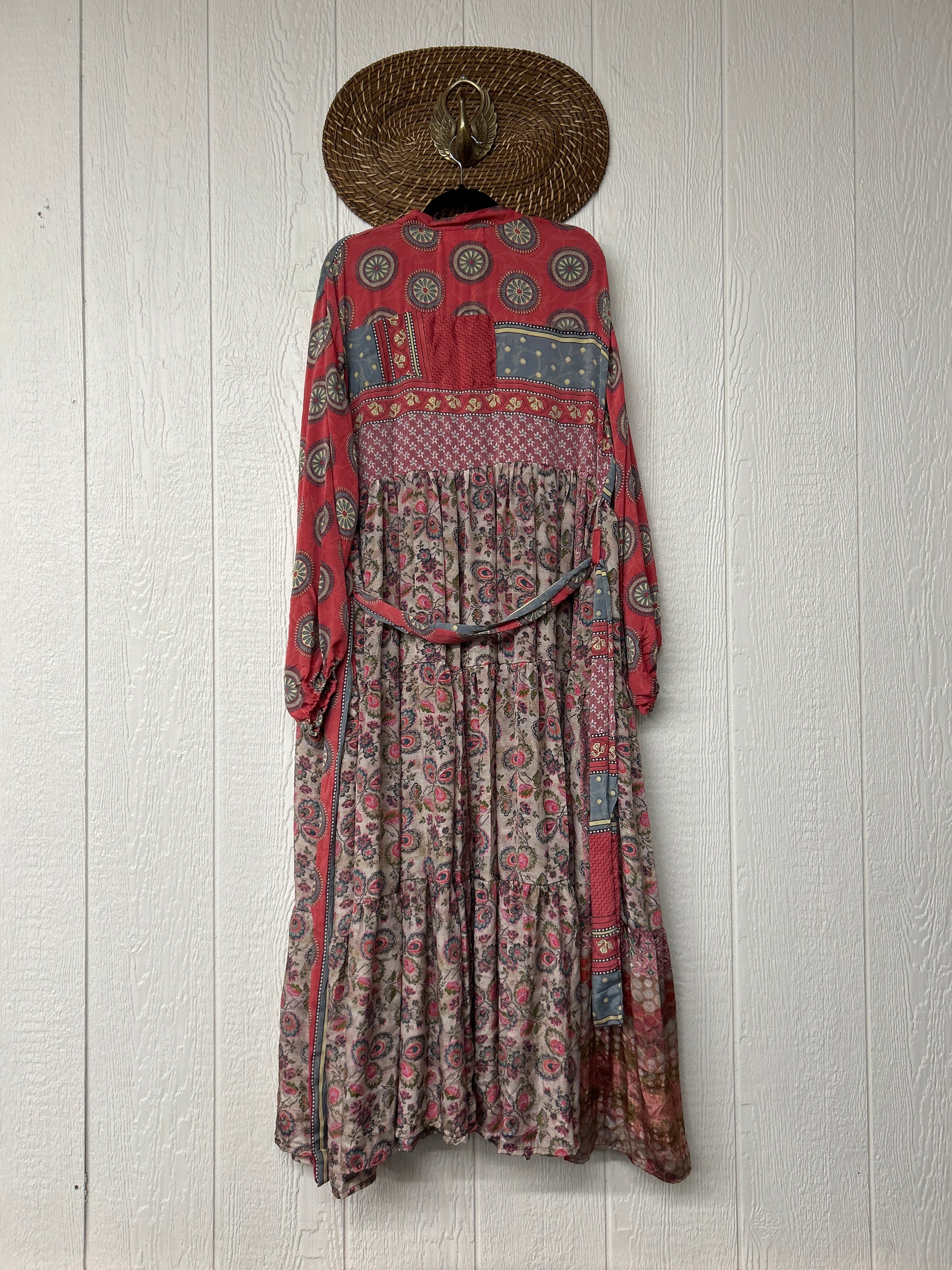 Disclosure: Our vintage styles have lived a full life before becoming the designs in our shop. Fabrics may have small threads or holes in the layers. Color inconsistency or small stains may be present. The saris are sewn together and extend the life of each design.