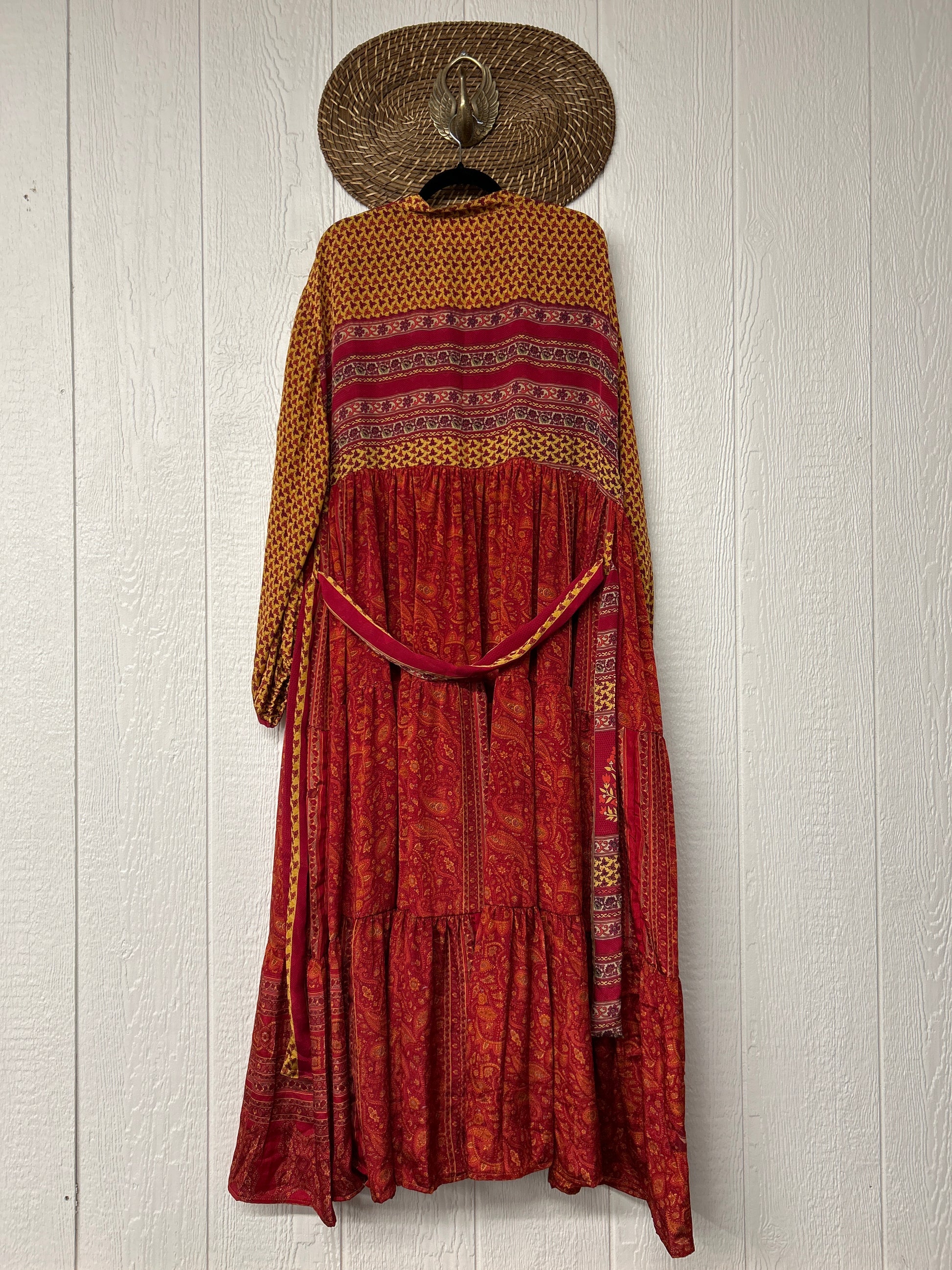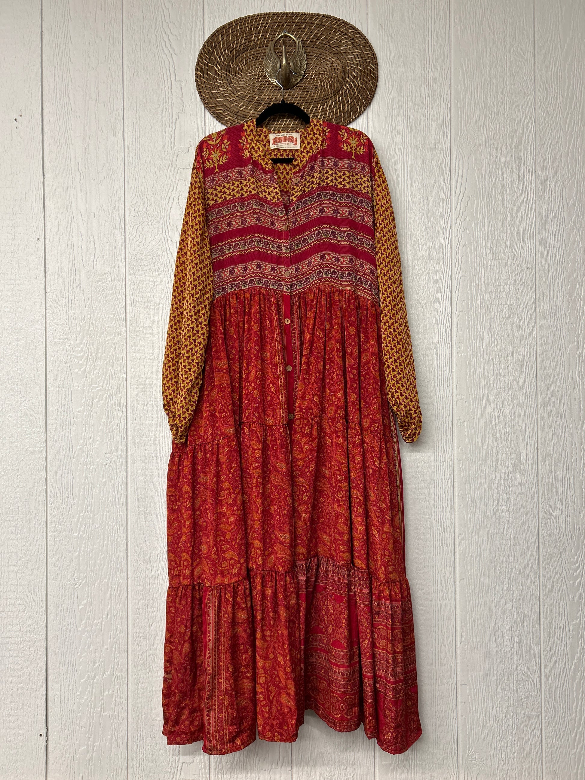 Disclosure: Our vintage styles have lived a full life before becoming the designs in our shop. Fabrics may have small threads or holes in the layers. Color inconsistency or small stains may be present. The saris are sewn together and extend the life of each design.