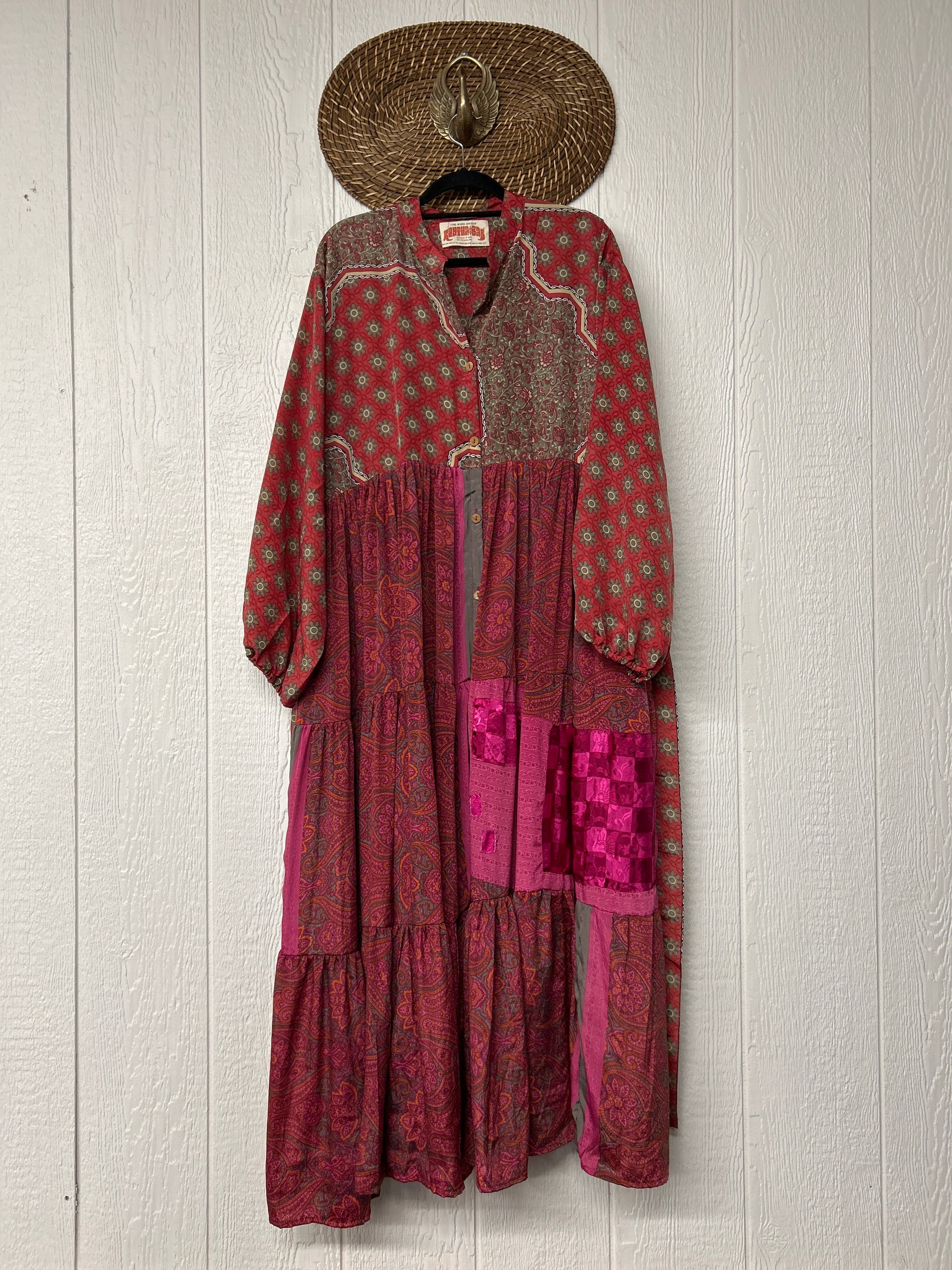 Disclosure: Our vintage styles have lived a full life before becoming the designs in our shop. Fabrics may have small threads or holes in the layers. Color inconsistency or small stains may be present. The saris are sewn together and extend the life of each design.