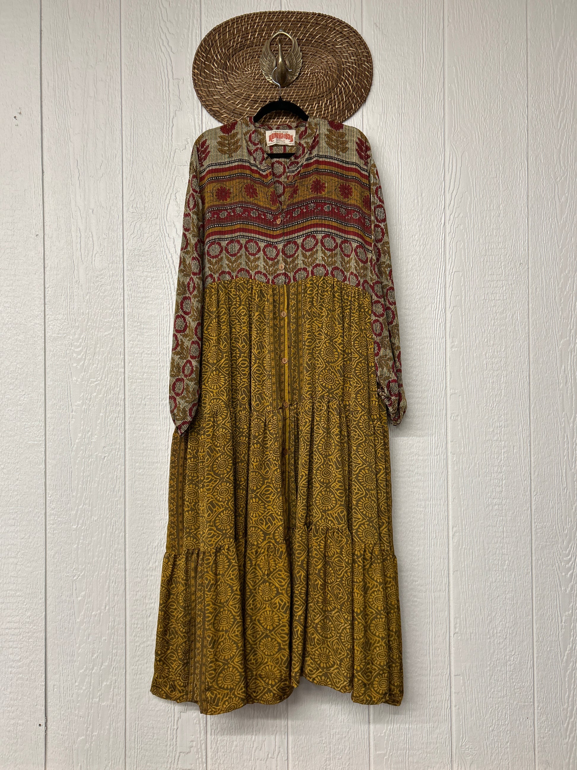 Disclosure: Our vintage styles have lived a full life before becoming the designs in our shop. Fabrics may have small threads or holes in the layers. Color inconsistency or small stains may be present. The saris are sewn together and extend the life of each design.