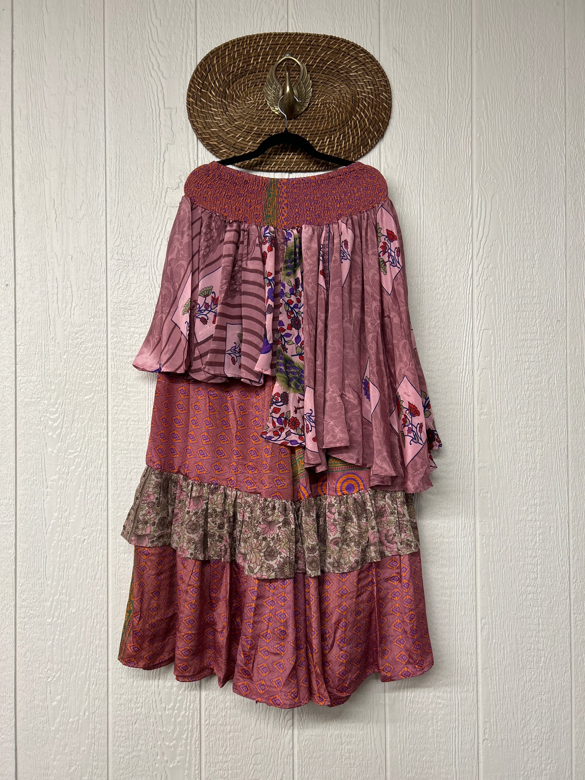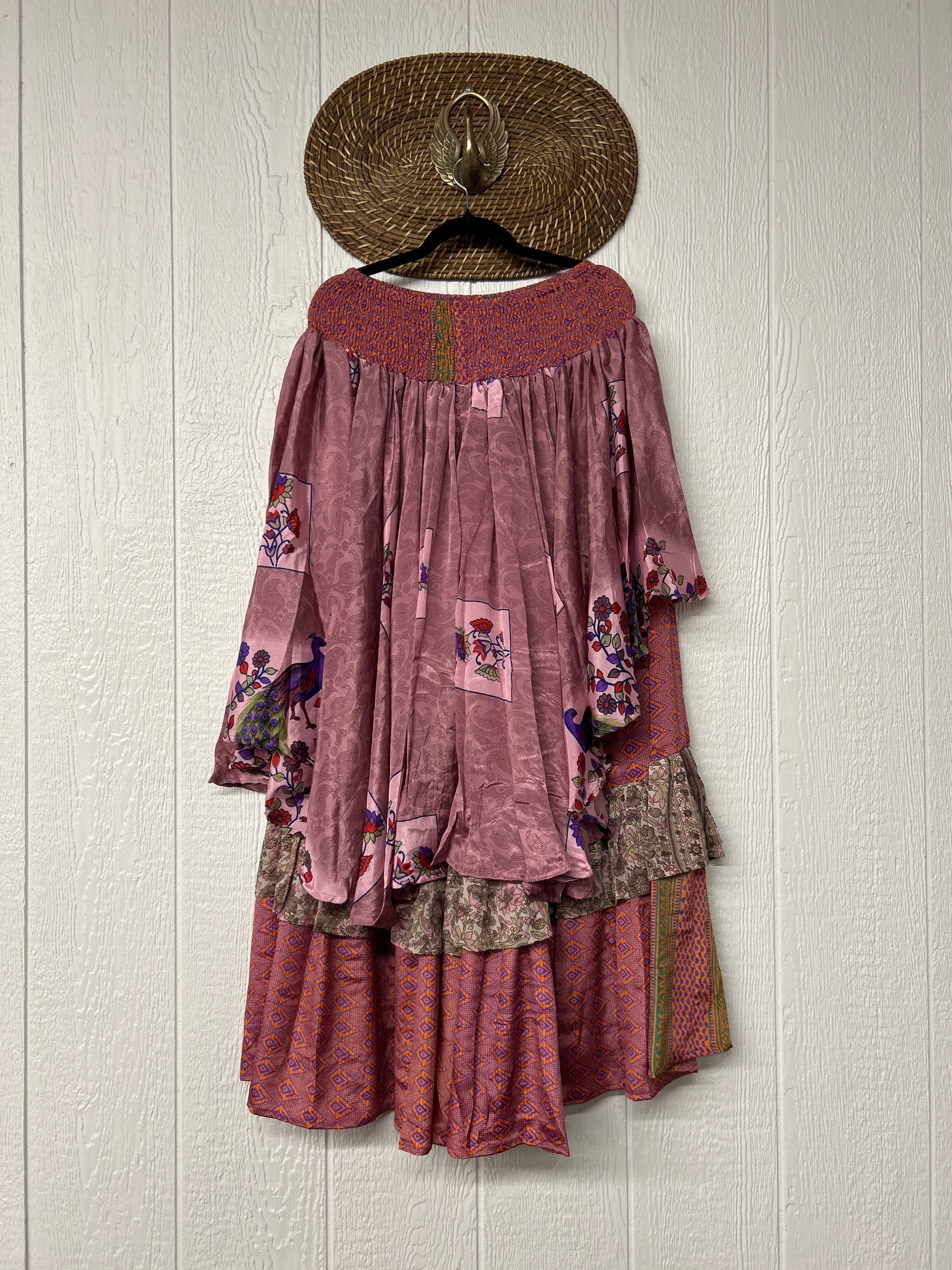 Crafted from vintage rasgulla sari these ethereal pants features stretchy waist, super wide legs, double tier hem and a skirt layer. these pants will make you want to dance! One size, recommended up to size 22/24 Crafted and sewn by families in a small village in Northern India providing work and a fair living. This product should be hand washed and line dried for longest life. For softness, fluff in the dryer on low heat after it has dried from hand washing. Disclosure: Our vintage styles have lived a full life before becoming the designs in our shop. Fabrics may have small threads or holes in the layers. Color inconsistency or small stains may be present. The saris are sewn together and extend the life of each design. Imperfections should be celebrated.