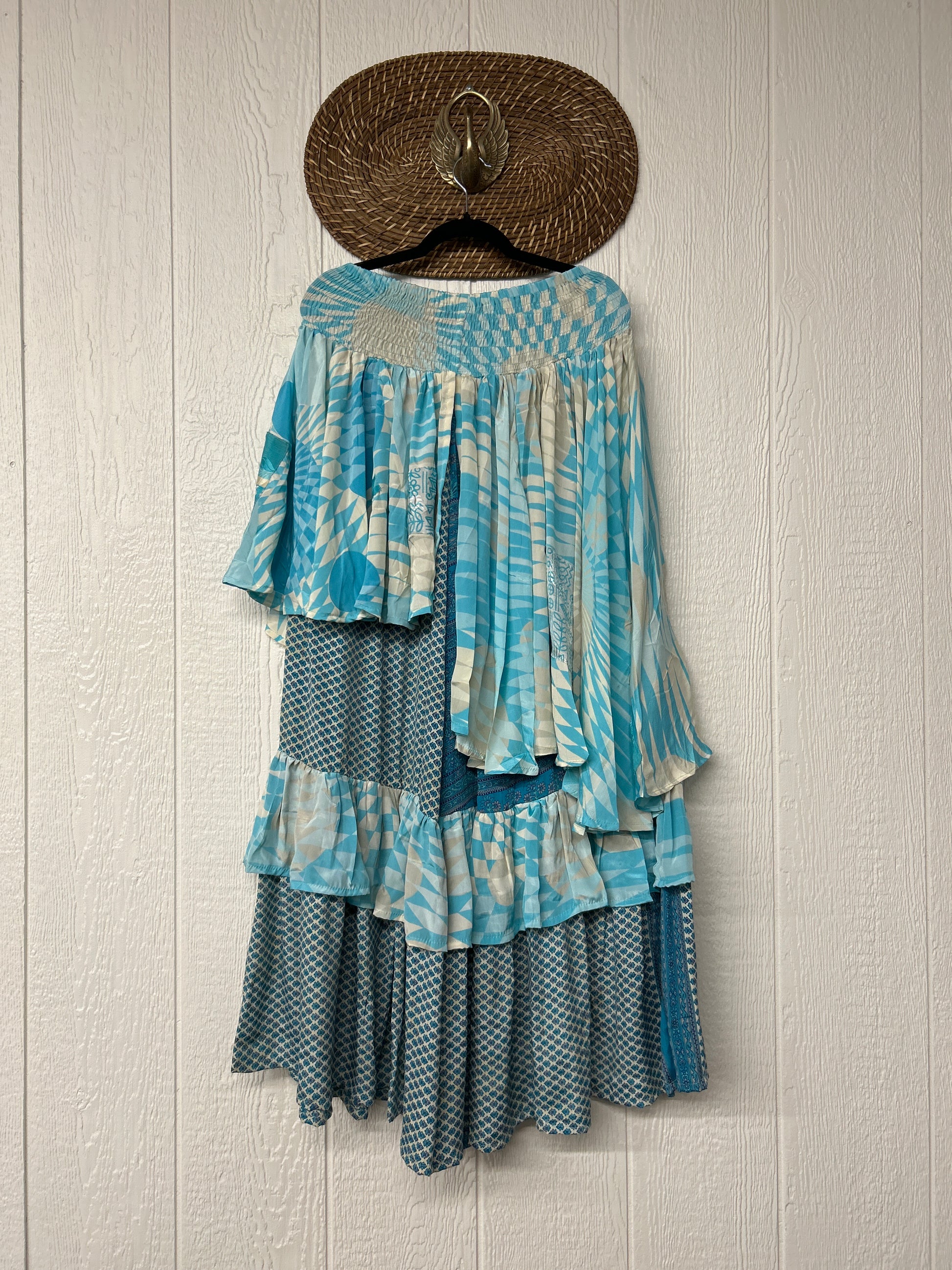 Crafted from vintage rasgulla sari these ethereal pants features stretchy waist, super wide legs, double tier hem and a skirt layer. these pants will make you want to dance! One size, recommended up to size 22/24 Crafted and sewn by families in a small village in Northern India providing work and a fair living. This product should be hand washed and line dried for longest life. For softness, fluff in the dryer on low heat after it has dried from hand washing. Disclosure: Our vintage styles have lived a full life before becoming the designs in our shop. Fabrics may have small threads or holes in the layers. Color inconsistency or small stains may be present. The saris are sewn together and extend the life of each design. Imperfections should be celebrated.